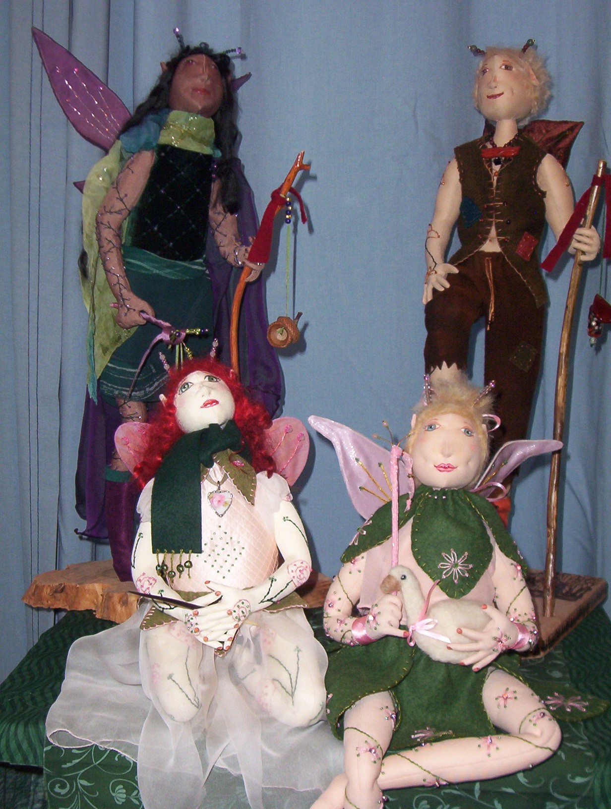 I had always wanted to make a baby doll, and so in trying to do that, I ended up on a very different journey. As I was making the doll, she turned into something different entirely not a baby, but a young girl. A fairy. Her name was Lacie, and as I was working on her, a story evolved, and it just mushroomed. I work a book, called Lacie and the Goose, which was published over 10 years ago, and I consider it my best accomplishment. I have made dolls from the four main characters from the book, and I have 2 more books in progress, hoping to finish at least one of them in the next few months.