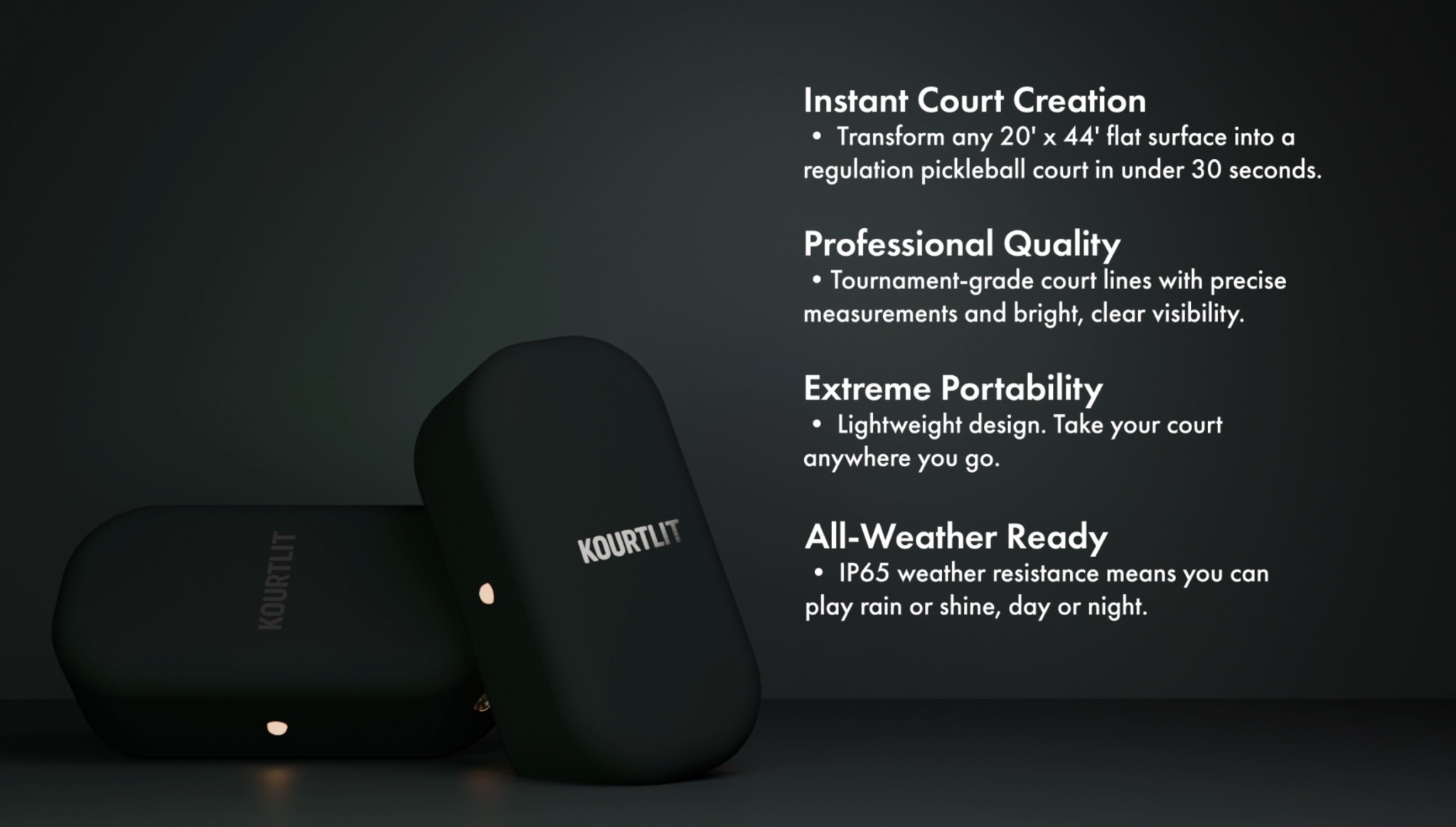 KourtLit grew from the same mindset. Pickleball is growing fast while court access lags. KourtLit is a portable device that projects a regulation court in minutes. No construction. No paint. We’re building for schools, parks and rec, clubs, and event organizers who need more playable space now.
