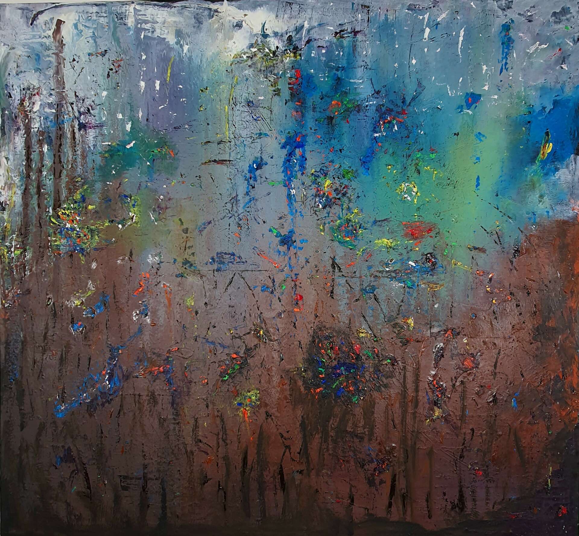 My true passion lies in abstract expressionism, a genre that allows me to take viewers on an intense journey through layers of colour. The uninhibited process involves superimposing thin layers of oil paint with final impasto finishes, creating a multi-layered picture with pentimenti peeking through. I aim to showcase space and depth, inviting viewers to traverse through these layers and back to the surface, ultimately leading to a grand finale.