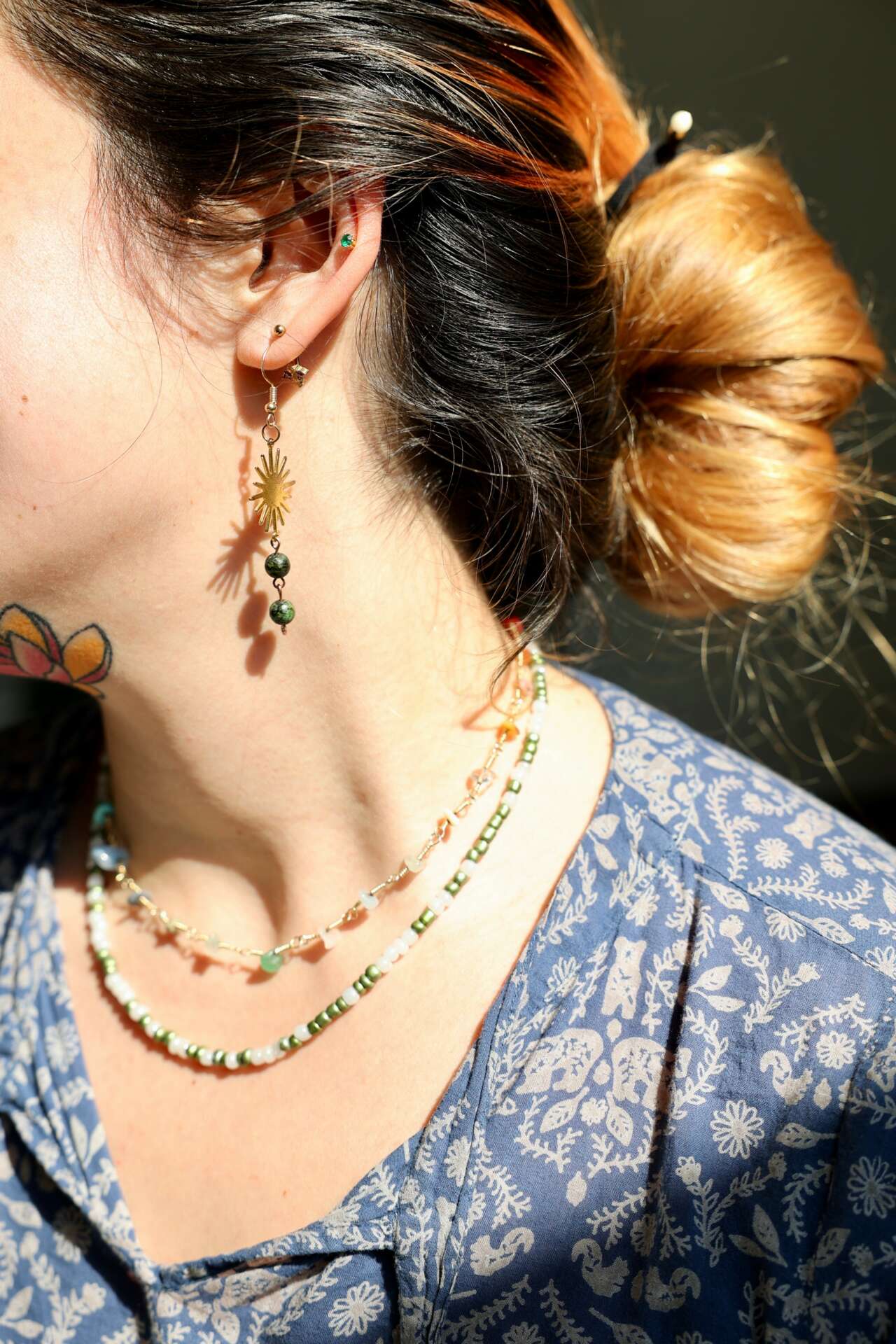 To be honest, I couldn’t recall the first dollar I earned from my art. So, curiously enough, I had to scroll back through the sold orders list on Etsy. It was nostalgic and fun to relive how and where this started. The very first few sales pages were from crystals, tarot decks, and plants. But then, I saw them, a pair of big gold hoops with pink, blue, and yellow wire-wrapped aura quartz crystals hanging from them. The first dollar I ever made was from a pair of bold earrings to my cousin. Many of the first sales I made were to family and friends.