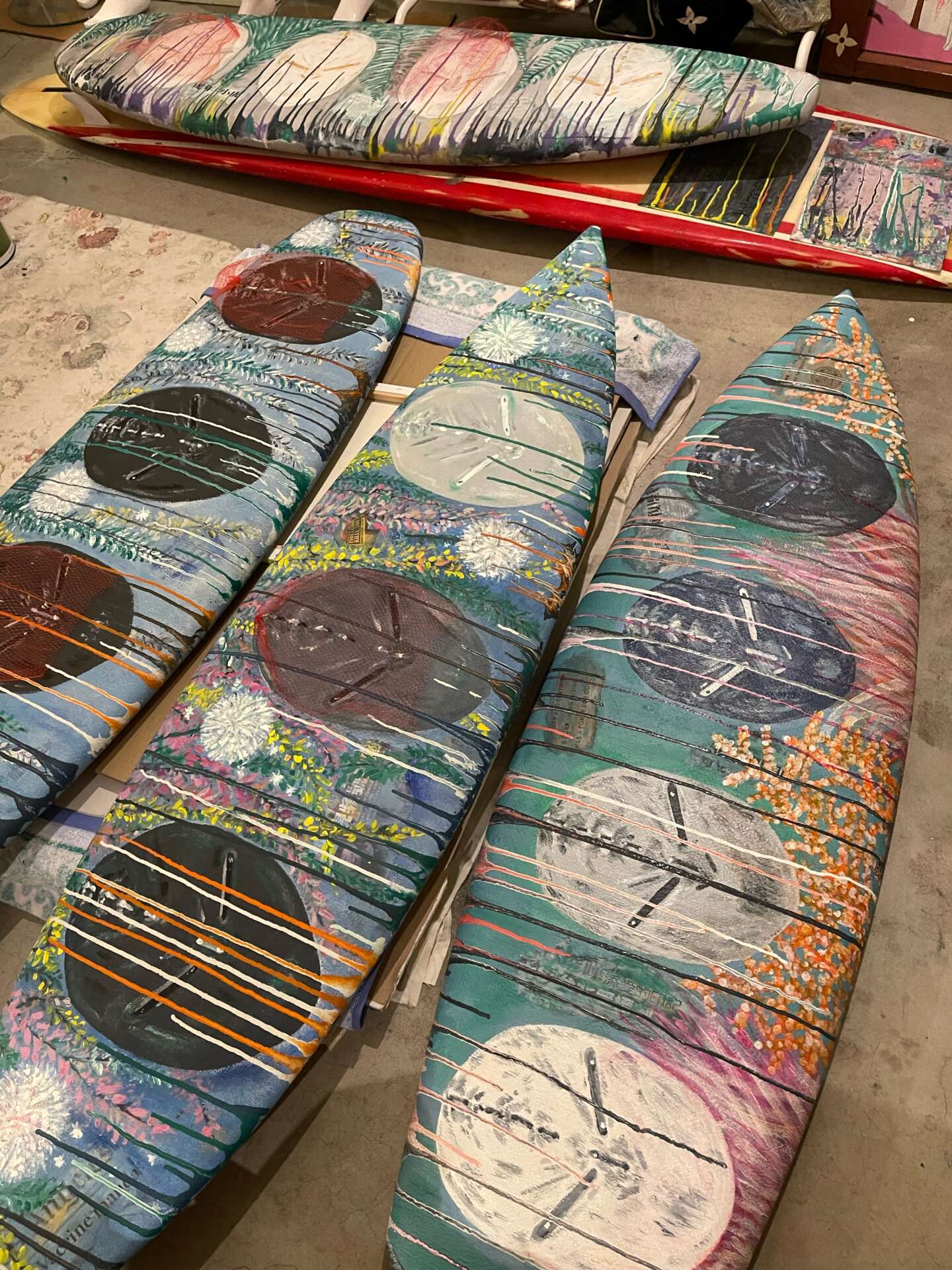 The insurmountable amount of debt can drown you quicker than a rip curl. If you’re not running your creative endeavors properly, you can sink abruptly .. You must sell your works at a determined price and know your worth.. factoring, in as far as your concept, preparation, time, process, energy, materials, artistry.. I’ve had to say no to lower price negotiations and it’s difficult when you’re motivated to get your work on the walls .