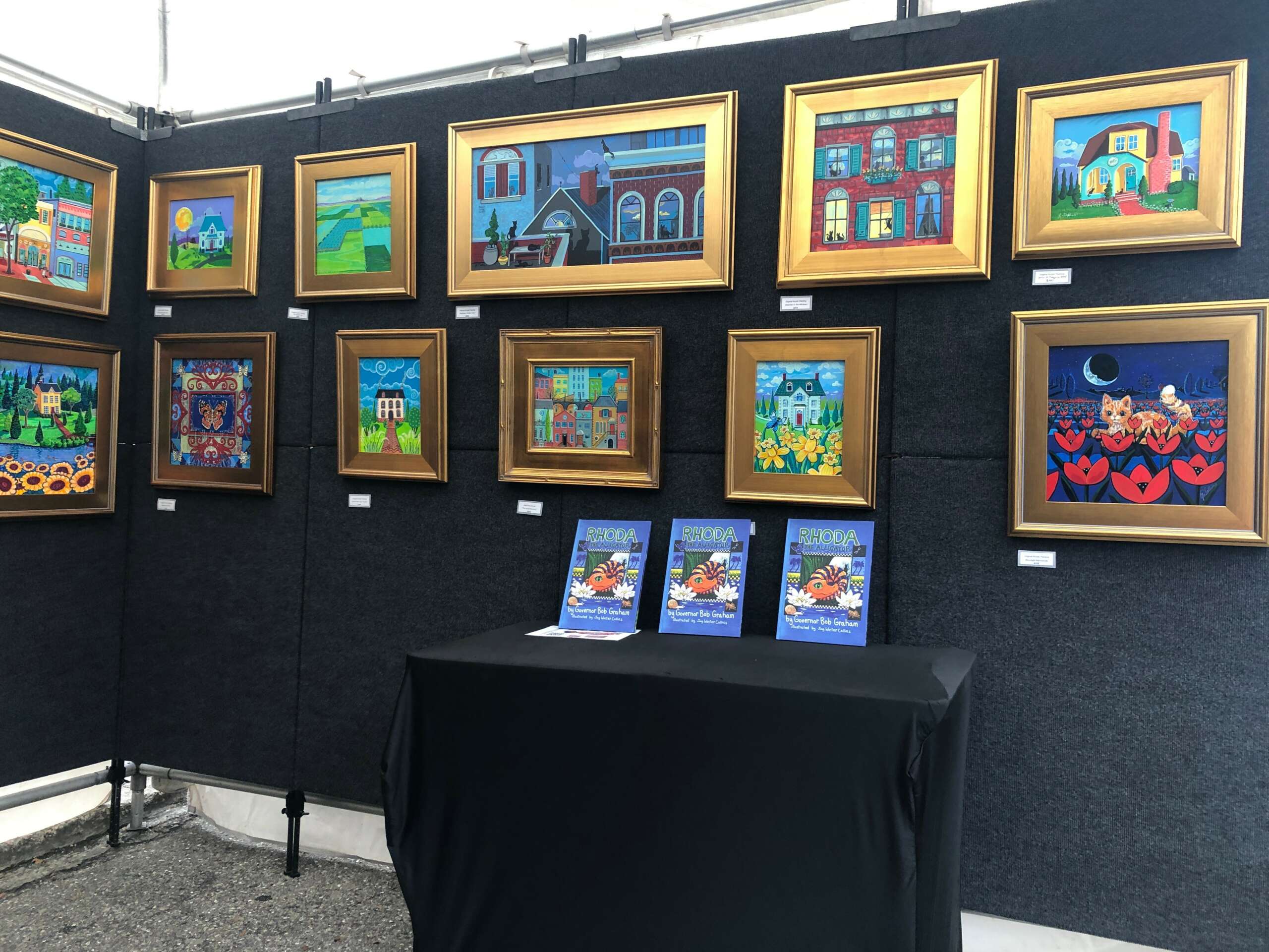 I now travel to shows regionally, going as far west as Alabama and north to the Carolinas. I have collectors on four continents and have sold over 800 paintings in the last ten years. I have established Art Studios of Grace, which is four studios located in a former nursery school behind Grace Presbyterian Church on north 13th street in Gainesville, Florida. Two lifelong goals I met in 2020, illustrating a children’s book and creating a community of artists. I love what I do. My paintings focus on joy.
