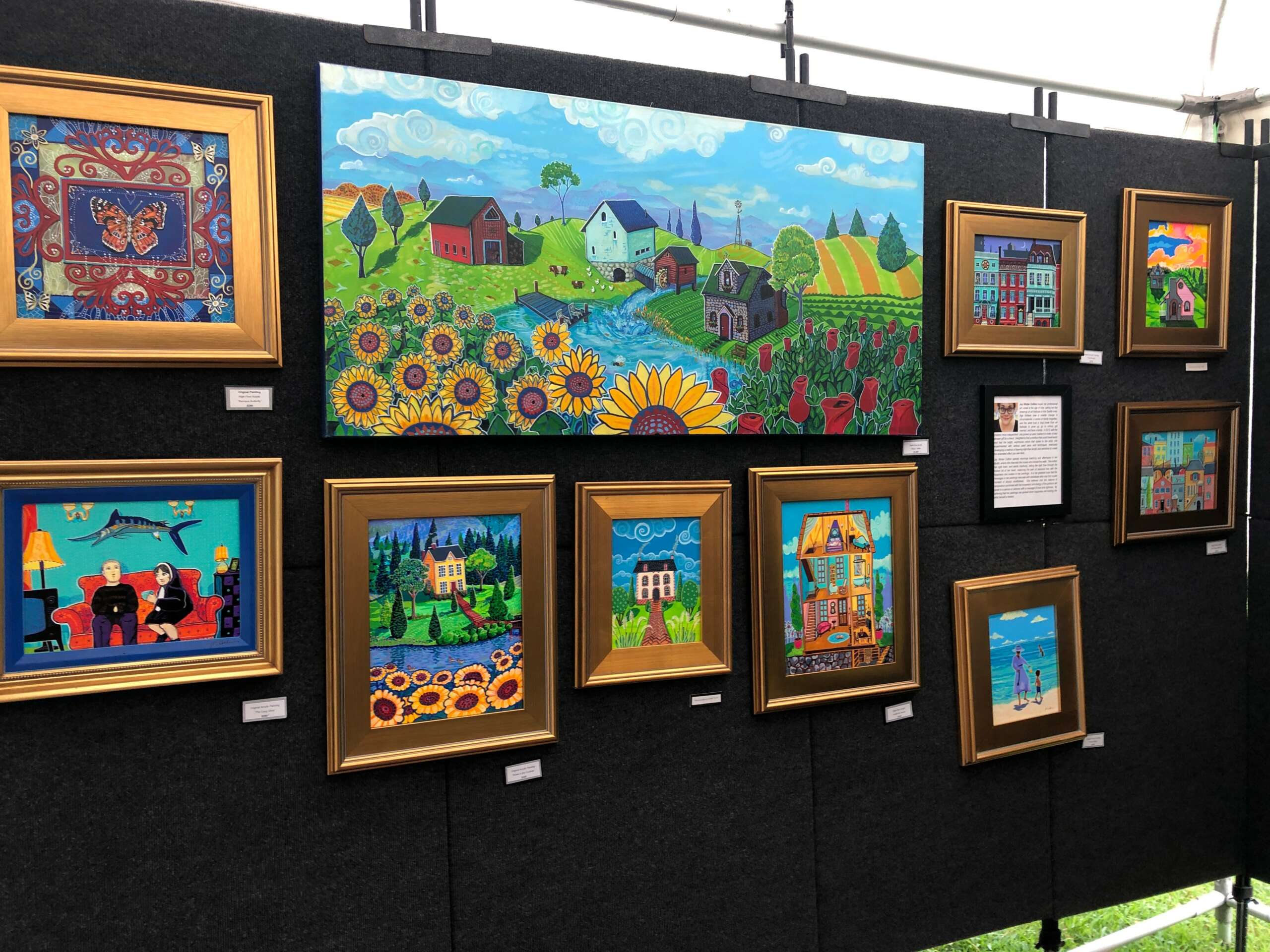 I now travel to shows regionally, going as far west as Alabama and north to the Carolinas. I have collectors on four continents and have sold over 800 paintings in the last ten years. I have established Art Studios of Grace, which is four studios located in a former nursery school behind Grace Presbyterian Church on north 13th street in Gainesville, Florida. Two lifelong goals I met in 2020, illustrating a children’s book and creating a community of artists. I love what I do. My paintings focus on joy.