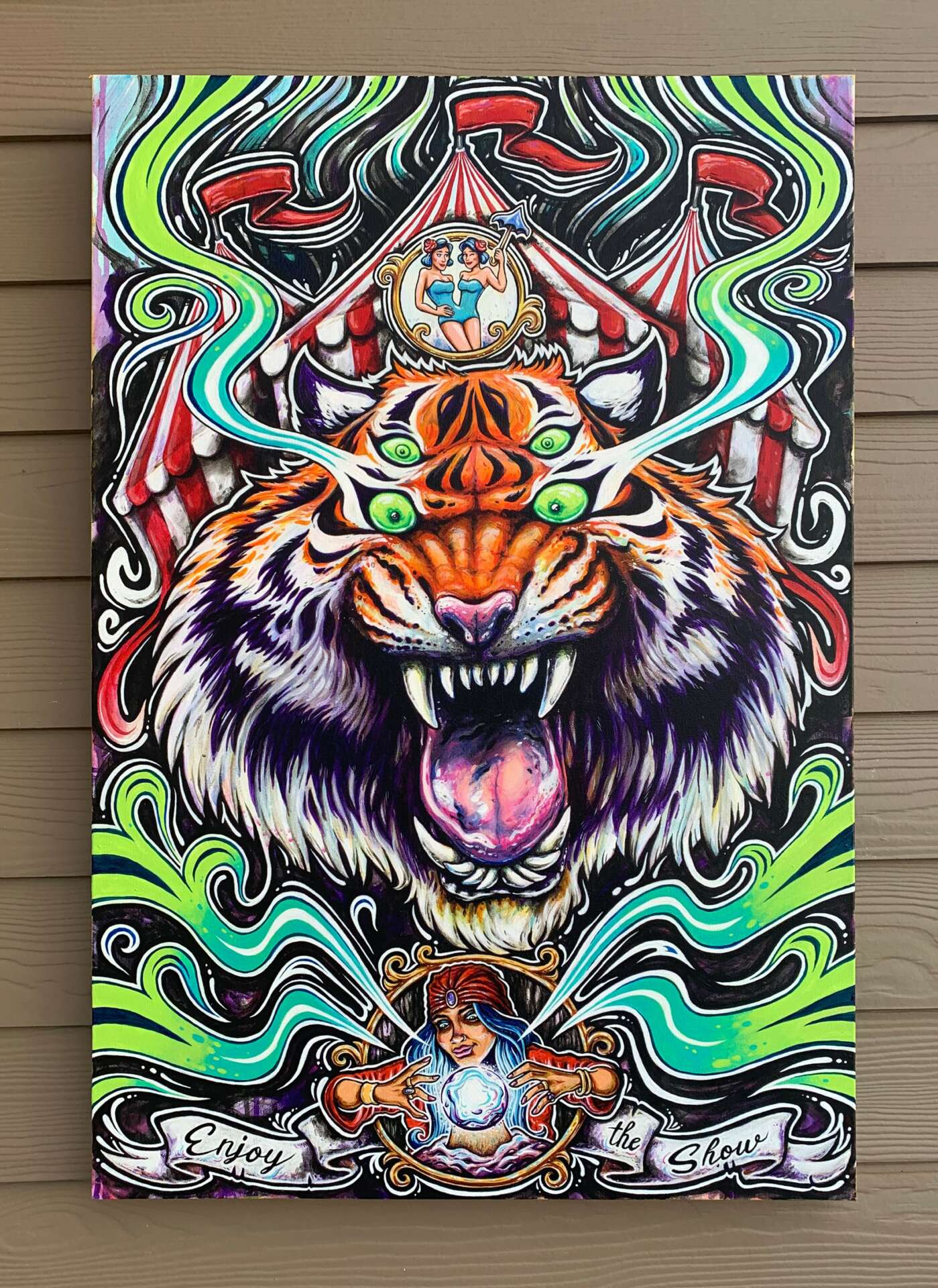 I’ve always wanted to create art. I can remember being in 2nd grade and drawing things that would grab peoples attention. So I would fill all my school notebooks with characters and doodles. I took all the art classes in high school. And then entered art school after that. Once I received my bachelor’s in art I still wasn’t taking art seriously as a career. I was young. Then after starting a family my thoughts began to focus on the future more. It was the end of 2018 when my brother in law commissioned me to paint a canvas for my sister that something clicked in my head. While doing that piece I told myself that this is what I’m going to do for work for the rest of my life. Paint, draw, design, and create. I became focused on art as a career. It is something that I have to get out. It’s therapeutic and rewarding.