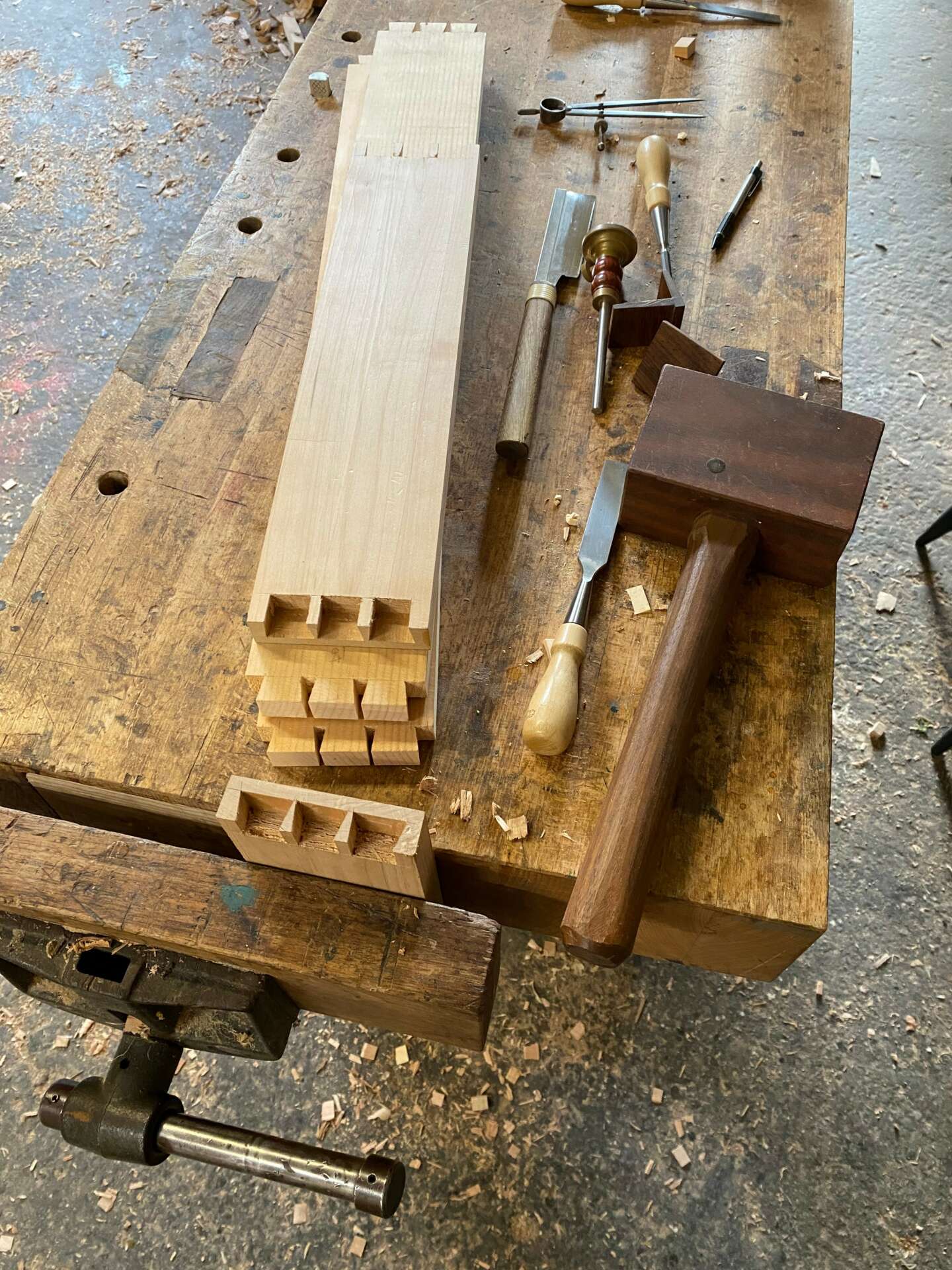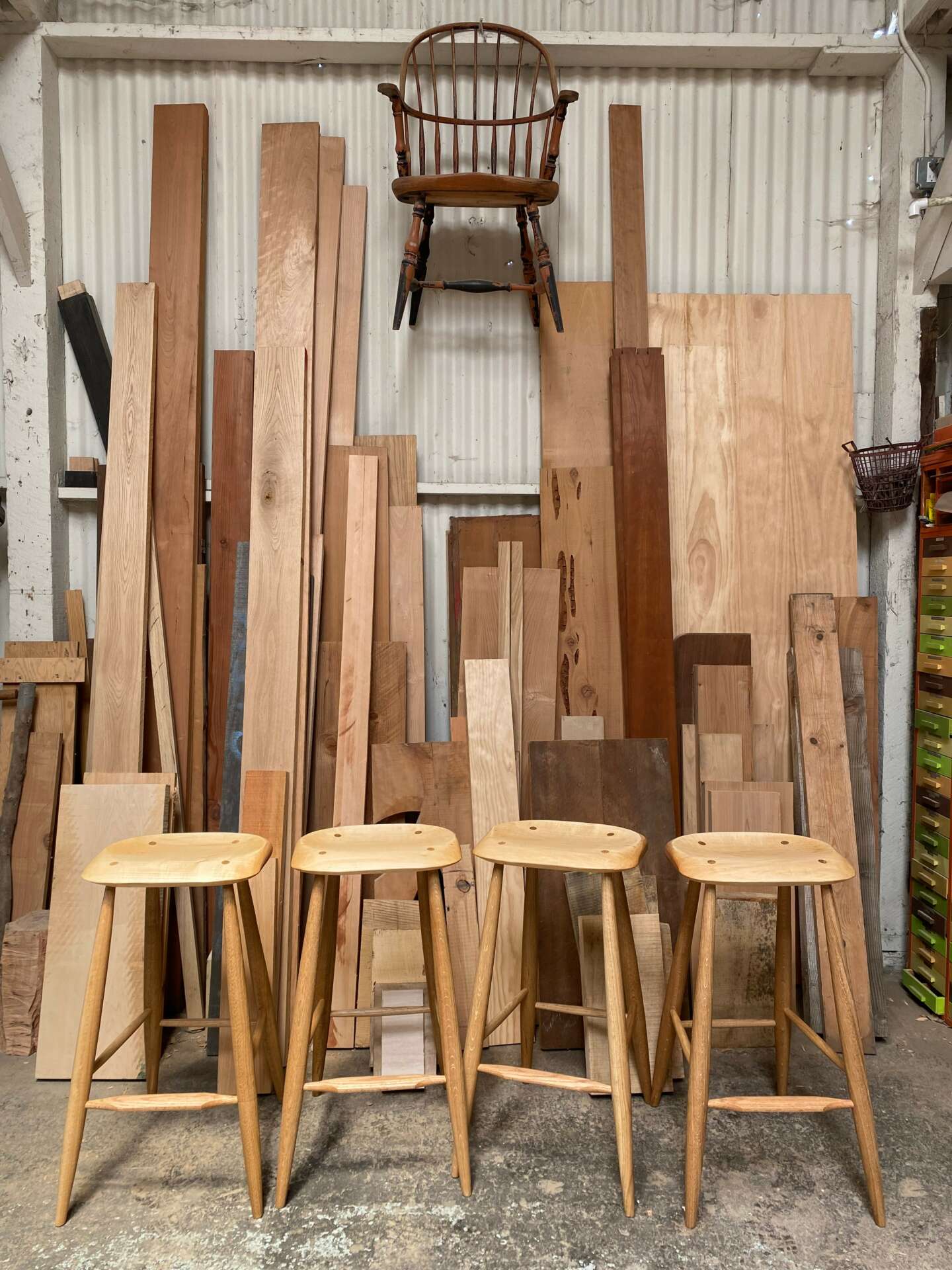 Much of my initial learning came from looking at things and reverse engineering. Or dissecting a piece of furniture found on the sidewalk. But this only deepened my desire to make things, which led me to Cerritos College woodworking (specifically). This immersion was my deep dive to where I’m at currently. I was surrounded by peers, who shared a similar interest. Yet each individual came from a different background, brought their own approach, and received their own results. This is also where I learned from instructors like Carl Stammerjohn, Tony Fortner and Cliff Trimble. All of whom taught me things that would lead me to discover new things I was previously unaware of. Such as timber framing, which I studied in Maine. Or period furniture which I learned from Phil Lowe, at his Furniture Institute of Massachusetts, in Beverly. And my most impactful job and apprenticeship to date, was with George Sawyer at Sawyer Made in Vermont. Everything boiled down to an interest in Windsor chairs, which led to a class at Sawyer Made, and led to a working apprenticeship. Not only learning traditional chair making, but how to operate a shop, maintain the timber frame structure which housed us, maintain the tools and equipment we relied on daily to make our well being. I learned a beautiful resourcefulness from rural Vermont, which was my greatest take away. And in many ways I learn on a daily basis from visiting friends, and their shops and space. Especially if it isn’t wood related. Problem solving in my friends motorcycle shop often teaches me something, that I can stash in the catacombs of my mind, which I can pull from down the road.