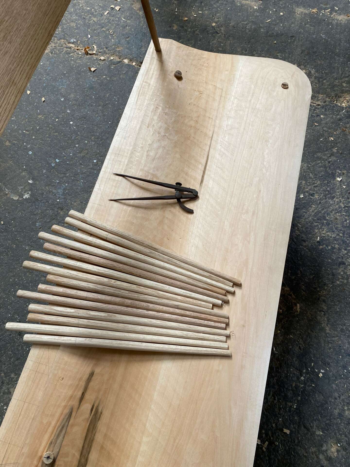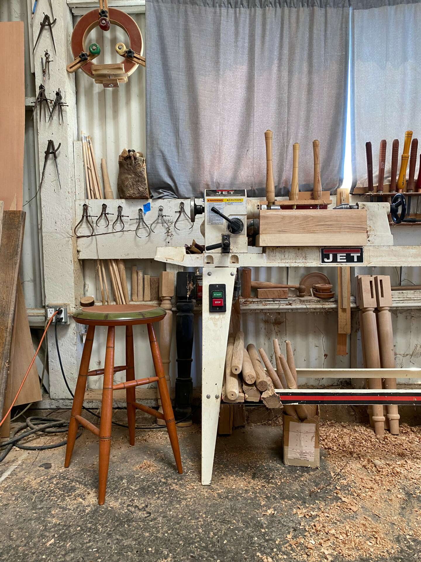 I came to my craft, I suppose initially from art. When I was a kid I was always drawing cartoons. In high school I was drawing flyers for punk shows and zines or whatever, and designing logos for friends bands. Which led to silk screening t-shirts, I enjoyed the creative control. This sort of led to block printing, I found carving to be a discipline I could sit down to for hours and really enjoy. It didn’t feel like a task, I could spend all day and night carving undisturbed. Anyways, I guess the first woodworking tools I got were some carving tools. From carving wood blocks to print, I wanted to frame some of my prints and embellish the frames. Then I started carving tikis on driftwood and making frames and boxes. So I’d look up terminology, or tools, and names of different joints. And dive into each one, reading all I could find. And I still pretty much do the same thing. Now I can spend a day at the lathe turning legs and parts for chairs after splitting the parts out of a log. The sculpting process is what I still enjoy. And carving the seats. Windsor chairs have no right angles, and are all about the negative space. For me it’s a thrill to sculpt each piece, every pass of the tool alters the chunk of wood until you are satisfied enough to set the tool down and walk away. I think my work has a human-ness to it that I try to emphasize. Every piece is made by my two hands. There are no robots in my shop. Wood grain is so unique and expressive, and I try to embellish that with the right amount of tool marks. Letting the user know through visual and tactile senses, that a human made this and it’s not perfect. My instructor Tony Fortner says we don’t say that word, and I still don’t use it. I make furniture to be used and enjoyed. I was drawn to period furniture and antiques because if they are made well enough to withstand decades even centuries of use, they develop a patina and character all their own. I find that very beautiful. I suppose I’m at this stage in my career where I don’t just get to do one thing. I’m not to the point where I can be too selective on what jobs I get to turn down. I mostly have to say yes to every call, which sometimes finds me crawling under houses or up on ladders. But for now in my work, I’m most proud of my ability to figure things out so I can keep creating things out of wood.