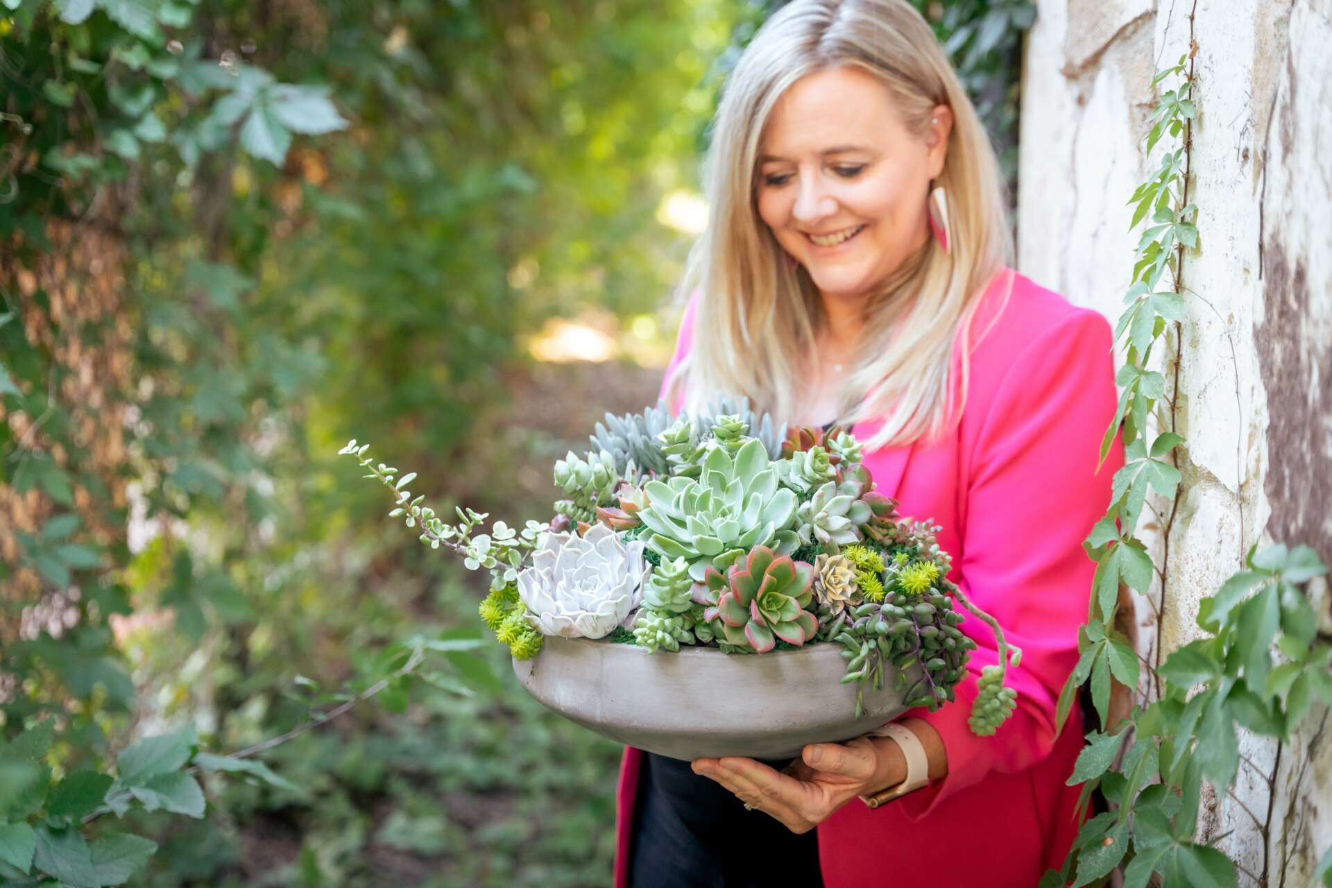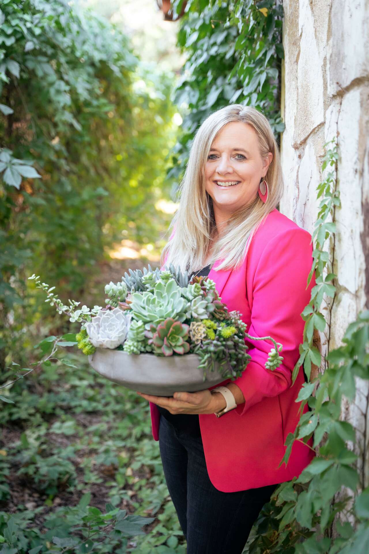 I have always killed all the plants. But I love plants. I have just never had a green thumb. Years ago, succulents became popular and I was so drawn to them. People always told me they were easy to care for and hard to kill. I really wanted to try to purchase some succulents and see if they could survive my black thumb. Well, I learned quickly that succulents thrive on neglect. This was the perfect plant for me! I thought if I could do it, anyone could. So I began making succulent container gardens for friends and family. They encouraged me to make a Facebook and Instagram business page. After I did this and started attending Farmers Markets with my plants, things got really busy. It was such a fun job. Then, just as things were really taking off, Covid hit in 2020 and we had to decide how to proceed. We did grab-and-go gifts and porch pick-ups and it actually worked really well. In 2020, we also built our Succulent She Shed. This was a place where people could come shop for gifts and succulents. It is also a beautiful space to hold succulent workshops. We hold classes where we discuss succulent care and people build their own succulent arrangements. This has been my favorite part because people enjoy learning and creating.