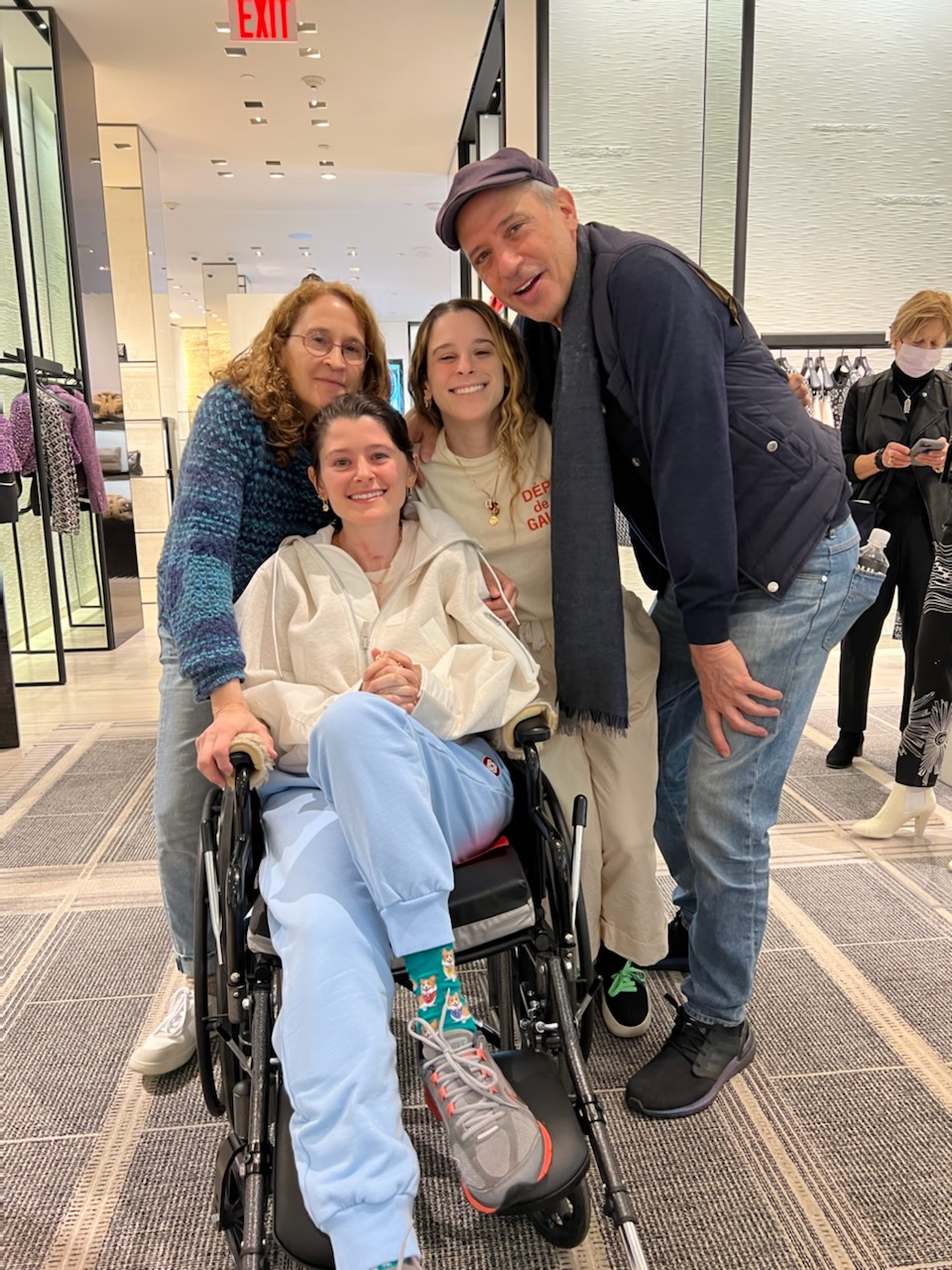 Caryn: “In the beginning when Jenn was really sick, the nurses and doctors would ask her to show them one finger if she could hear them and two fingers if she could see them. Amanda was so desperate to see the old snarky side of Jenn re-emerge that she reminded Jenn of her middle finger and taught her to use it when asked to show a finger. Jenn started to do that. Soon, aides, nurses, residents, even attendings would stop by asking to see Jenn’s finger. Jenn became an overnight sensation and when she was at Glen Cove Hospital in rehab, hospital staff from every floor would come to have Jenn show them her middle finger.”