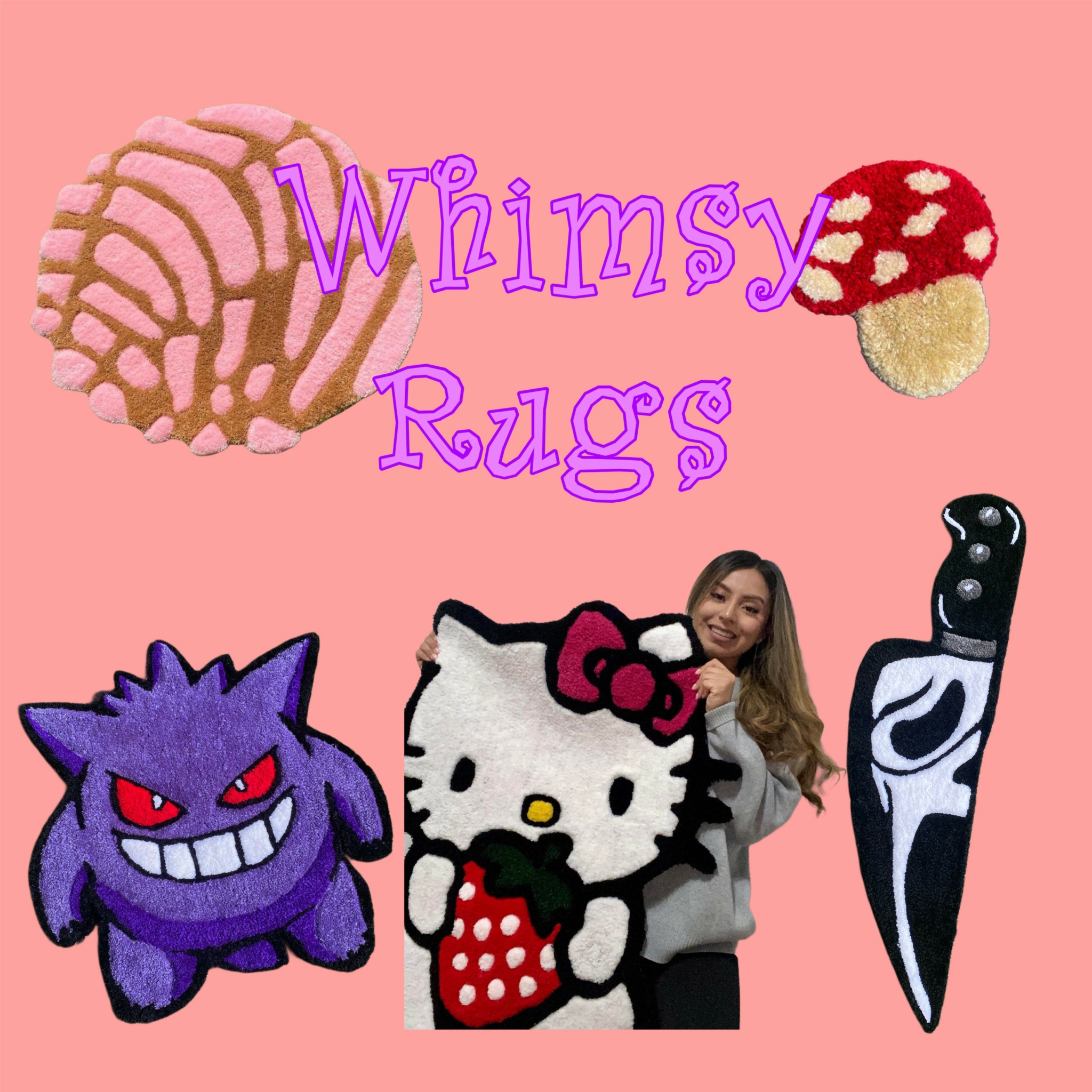 The idea to create The Whimsy Hideaway, formally known as Whimsy Rugs came from my husband. To make a long story short he wanted to give me something I could enjoy in my free time because at the time I didn’t have any hobbies. He fell ill in the hospital and that really pushed him to make the decision because you never know how long you’ll be on this planet. I was extremely nervous and scared; not only because I didn’t know what I was getting myself into, but because he would be investing so much of his hard earned money on me. I wasn’t sure what my brand would be, all I knew was that it needed to be 100% me. It took me a couple days to come up with the name, but I still couldn’t focus on the theme I was aiming for. After a year I slowly merged into other projects such as jewelry making because I wasn’t feeling fulfilled with just making rugs. I needed Whimsy Rugs to be more me, be more magical and dreamy, and that is when I came up with the idea to change my name to The Whimsy Hideaway. With this new name, I no longer was tied to just making rugs, I could create whatever my heart desired. I eventually would love to own a small gift shop, perfect for birthday shopping or just treating yourself to a cute fun trinket. I did not want to limit myself to rugs, although they are so fun to make I wanted to learn how to create more things. This is a part of me that I want to share with others. It makes my heart so happy when I see customer’s eyes light up at markets when they see something they like. It feels like butterflies in my stomach! Nothing makes me happier than connecting with others with the things I love. I am still testing out the waters with this hard launch of only creating what I like because not everyone has the same style as me, but it’s what makes me most happy. It was easy creating what’s popular at the time, “on brand”, “trending” because I knew it would sell, but I was feeling empty and I was losing interest. The Whimsy Hideaway is what saved me, and hopefully one day we get to become a local gift shop for all the weird and magical people out there!