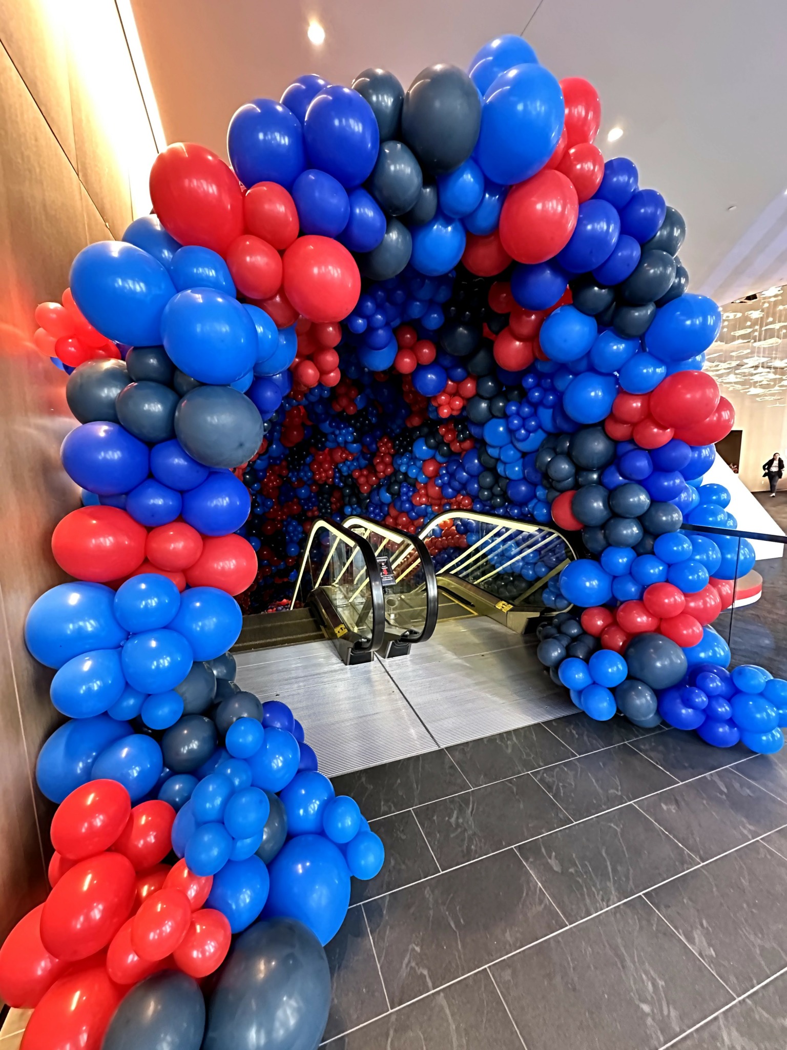 We met with the church, and they wanted a balloon installation in a 60-foot-high glass building. Without hesitation, I said, “Yes, of course we can do it!” But afterward, I thought, “Wow, how are we actually going to pull this off?” I had no idea how we’d suspend balloons 60 feet up or ensure they’d last from Friday through Sunday. I spent that entire month waking up at night, worrying about every detail. We had to factor in weather conditions like rain or wind and make sure the balloons would remain perfect all weekend.