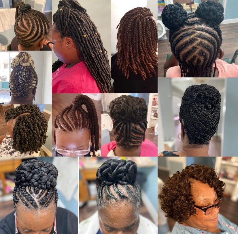 My cosmetology journey started in Warner Robins, GA in which where I went and graduated cosmetology school at. Well, I didn’t really have any interest in braiding or did I watch anybody braid hair but that is what God Gifted my hands to do. So one of my God sisters worked at the bank on the Air Force Base and different ladies would see her hair and ask who did it and she would tell them me. And that’s where my clientele began. She would give them my number and I started braided day and night. And my clientele continued to increase. Then I was blessed to work in two different salons to braid and style hair.