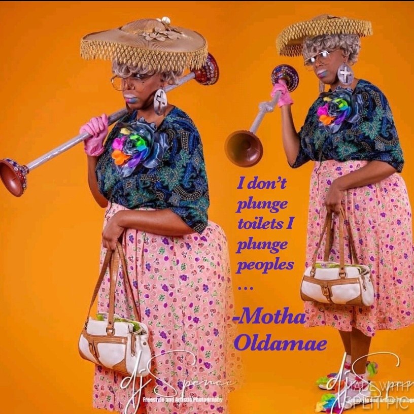 Also in 2018, I became a comedian and my stage name is “Motha OldaMae”. Growing up I enjoyed doing skits at church but I didn’t think about pursuing it at all. Well, when God sent S-N-O-W to Ocilla, GA in January of 2018, I decided to do a live Facebook video. I dressed up as an old lady driving around looking for a man… a “Snow Man” that is (LOL)! And that video brought a lot of attention for me, from comments to shares and then to people asking me when I was going to do another video. So I did a few more videos. And from their live videos, people started contacting me to perform at different events. So, I had to come up with a stage name, and with the help of her family, we came up with Motha Oldamae (because of family history in which my mom called me Oldamae growing up, Lol). Then God started giving me ideas for my appearance and instead of a regular cane, God led me to use two plungers to connect together to make it a cane. This would become her Releasing Plunger Cane. The motto behind this is: If you have any spirits in you that have you STOPPED UP, STUCK UP OR TOO SAVED UP, you may need a releasing in your life. So at each event, Motha Oldmae is likely to PLUNGE somebody and give them a RELEASING. Laughter is just like medicine, it’s good for your soul and can Heal your soul. (Prov. 17:22)