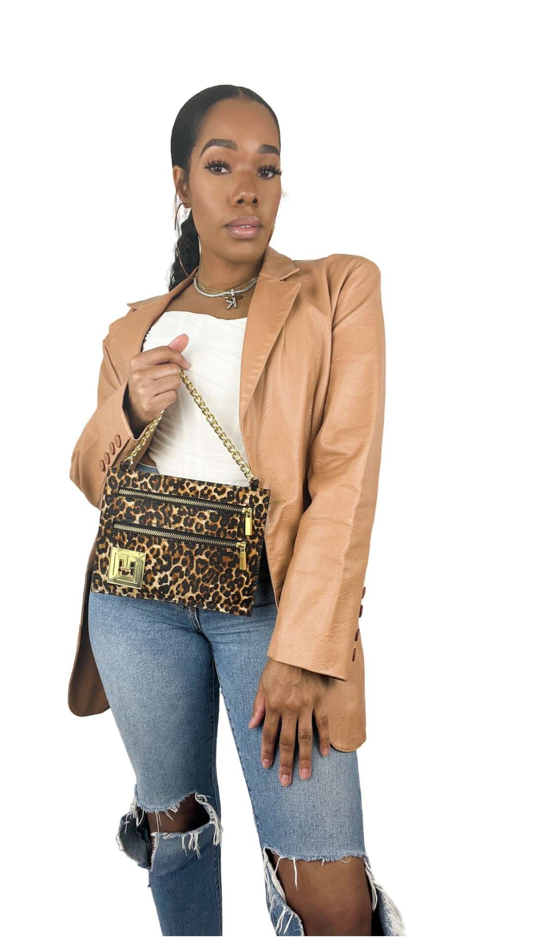 For starters, my name is Jessica, not Laura….but if you call me Laura it’s ok haha. I’ve always had love for fashion but I never actually considered that being a designer would be my profession. Even introducing myself now as a designer is a bit weird for me- especially because personal styling was my sole lane for a really long time. But I’m happy to be where I am now. I am a fashion designer specializing in leather and vegan leather handbags, to start. During Covid, I took the time to completely restructure the Laura Faye brand. I stared with changing the logo, and the overall look and feel of the entire brand. Then I created an original design exclusive to Laura Faye called “The Mini Clutch”, which I’m so proud of. This bag is unlike anything else you’ve seen and it definitely sets the Laura Faye brand apart from others. It was originally intended to be a handheld clutch, but of course sometimes women just want to be hands free! So, a few months ago I began offering a crossbody version and I’m so glad I did. This bag I make myself, but we also now have a manufacturing company for out other designs, so we’ve experienced quite a bit of growth within the last year.