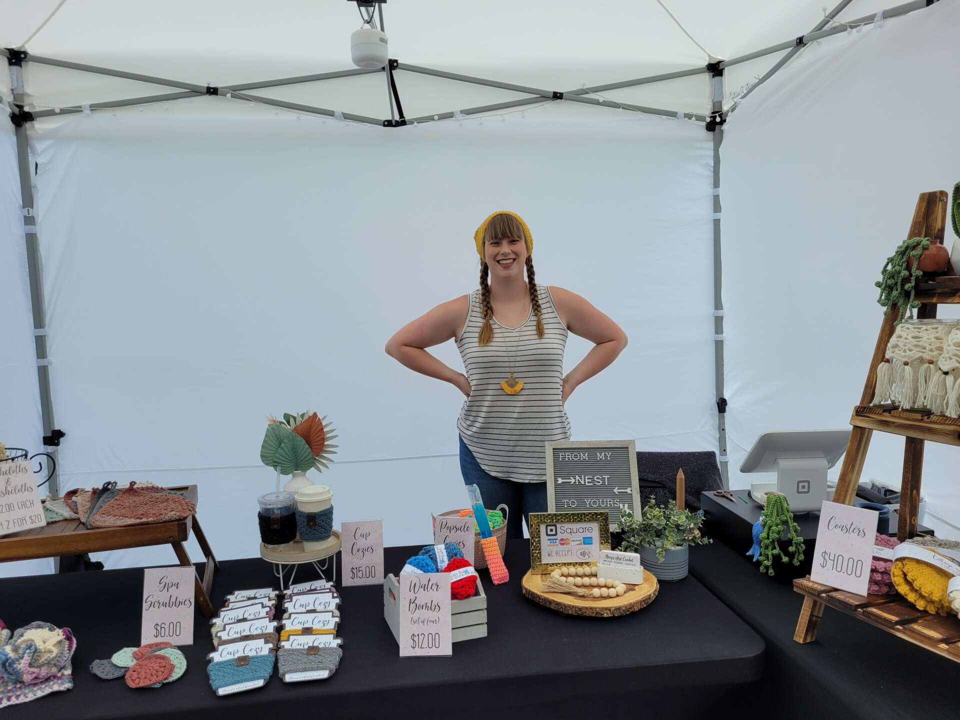 I left my full time “normal person job” and was looking to build something of my own. I had always wanted to work from home, and have always had that entrepreneur personality. Crochet had been a hobby of mine for a long time, but I never thought I could turn it into a business because my experience with crochet had always been making large blankets and scarves… items that take a lot of time, yarn, effort. I didn’t see myself making and selling enough blankets to make a real income, and also didn’t see them doing that well in the warmer months. But a quick search on YouTube for “summer crochet projects” completely changed my perspective on how large the world of crochet is. I realized there was a whole untapped realm of crochet accessories, home decor, wearables, etc. that I could make all year round. And Berg’s Nest Crochet was born! My last name is Sellenberg. When my husband and I first purchased our home, we started tagging all our social media posts of home improvement projects with #TheBergsNest. It became our wifi network name, it just kind of stuck. So when I was looking for a name for my new business, my husband was actually the one who came up with the name Berg’s Nest Crochet. It totally fits… I’m making handmade items in my home, for your home. From my nest to yours, if you will.