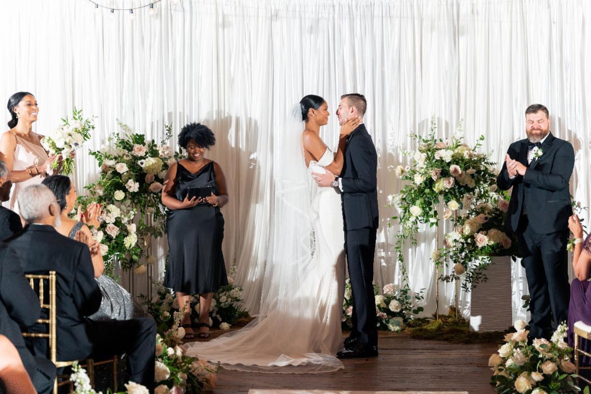 I went to the cousin as he was closest to the back of the room, quietly and quickly asked him to step off to the side with me, explained the situation and cautiously uttered the ask, ” Would you mind stepping in as their officiant?” Before I could even let him know I had a copy of the script, he said, ” I would be honored.” My team member quickly grabbed the couple’s folder out of of my bag and retrieved the script for the couple. He had literally 3 minutesto review it before I informed the couple and the wedding party, “We are ready to go!”