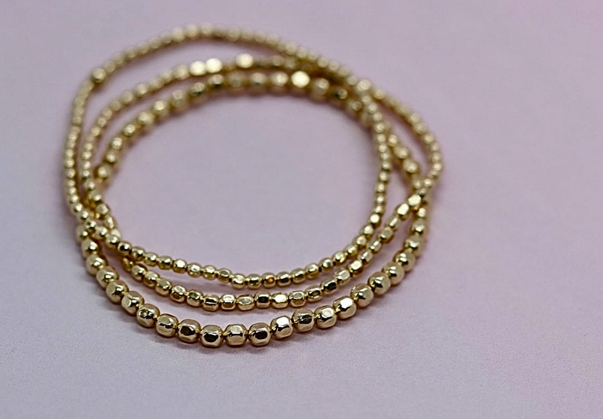 I make quality custom beaded stretchy jewelry. The jewelry I design is made with yellow or rose gold filled beads or sterling silver beads. The best thing about the material I use is that it is tarnish resistant and can withstand repeated water exposure including a summer of swimming. Everything is custom to each client so you can request almost anything.