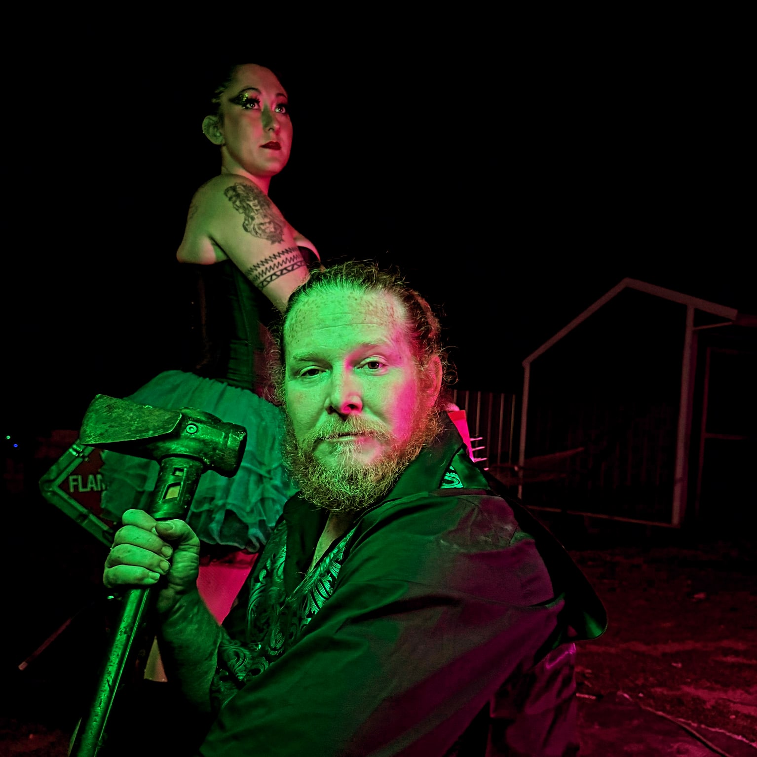 Our early years were tough. We battled homelessness and severe addiction, creating a path of self-destruction. Yet, amidst the darkness, we shared a dream: to escape our self-made prison and create our own circus. With the support of family and friends, our recovery journey began in Kansas City in January 2020. We found a place to get sober, jobs, and a fresh start. Dark Nightmares Haunted Attraction hired us to build props and gave us the chance to create a new circus stunt show, allowing us to live our dream.