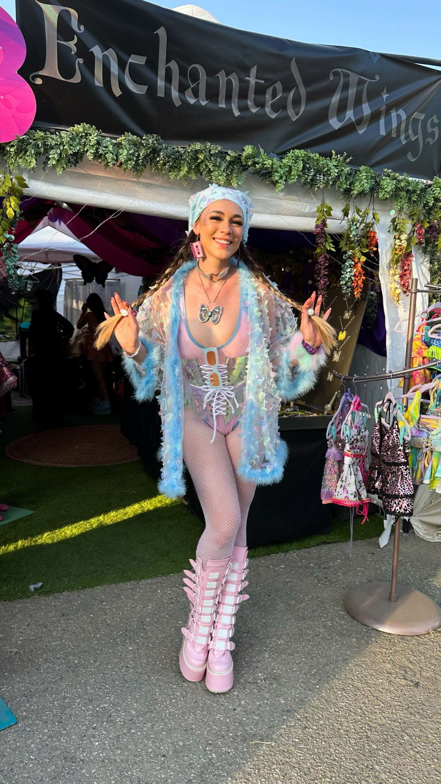 My name is Jewelia Britton, I actually started my business as Jewelz By Jewelia making crystal crowns. When my husband and I got engaged I really wanted a crown made out of long quartz crystal and I couldn’t find what I had envisioned so I decided to make it myself. My dress designer loved it so much she asked if I wanted to sell some in her shop. I was blown away and felt so inspired that I started creating non stop. I was apart of the festival community and was introduced by a friend to the incredible Lux Muse (clothing designer) who I soon became inseparable with. Our creations looked stunning together so we would do photoshoots almost every week and on the weekends we would vend shows and festivals. Lux taught me everything she knew and was not only one of my best friends but my mentor. I had also been vending the Melrose Trading Post every weekend where I got to meet so many wonderful people and really learn a lot from the other vendors that had been there for 10 or more years. When I got pregnant with my first daughter it started getting really difficult to set my booth up every week and after having my daughter I only vended a few times before I decided to take a break and focus on motherhood. I almost immediately got pregnant with my second so my creative flow was put on the back burner a little longer. After having my second daughter the creative itch had really built up and Enchanted Wings was born!