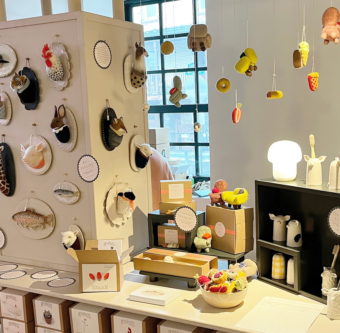 I started my business, PetitFelts, in 2011 after making a move from Atlanta to the Northeast. My life in the South during that time didn’t feel like fertile ground for me. My 9-5 job had me jaded and in general, I felt unmoored. Knowing a huge shift was in order, I took a leap and moved to a small town in Connecticut. In order to meet people in my new town, I signed up for a local craft fair. I didn’t want to make jewelry for the show (that’s what my degree is in) so on a whim, I decided to make a bunch of felted animal ornaments. Needle felting was a craft I had begun to teach myself a few years prior and I was thrilled to pick it up again. I ended up selling out of the ornaments and began to get orders for more animals. Although I had not originally planned on starting a business, PetitFelts was born. Over a decade later, I offer DIY felting kits, mobiles, wall hangings, a fair trade line of felted ornaments and online, as well as in-person classes. I met my partner, ceramist Andrew Molleur, at a craft fair in 2014 and we ended up relocating to the Hudson Valley a couple of years later. We now work from our home studios in Kingston, NY and he’s taught me enough about mold making and slip casting over the years, that I finally started to create ceramic plaques for my wall hangings and a line of animal toothbrush holders. I hope these will be the first of many more PetitFelts ceramic offerings to come. Learning the ability to evolve and pivot when necessary, has been really valuable and I’m proud of having not given up on my business, even when I’ve gone through uncertain or slow times.