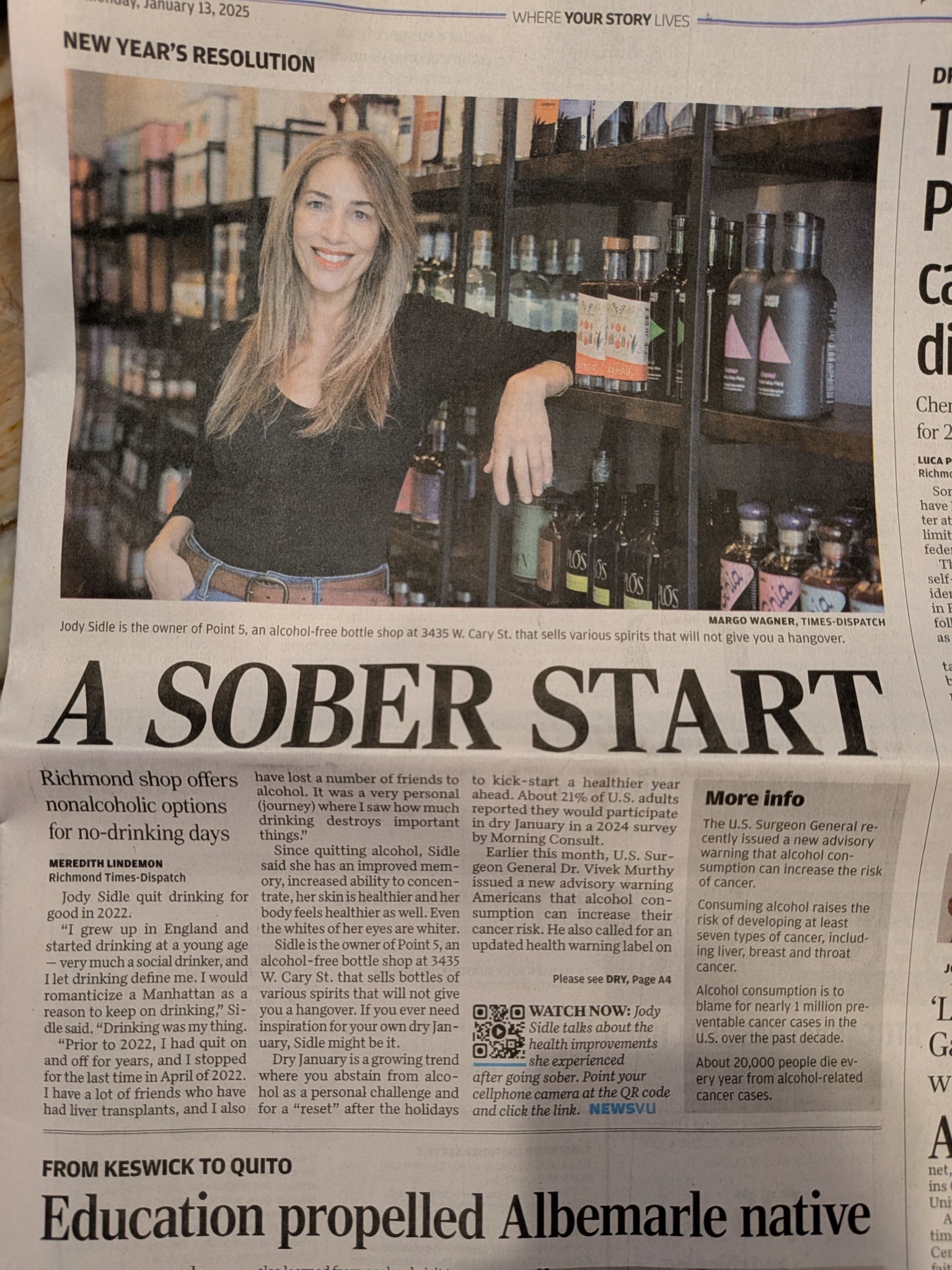 During the pandemic, I was going back and forth with drinking alcohol and abstaining. I’ve always had a somewhat unhealthy relationship with drinking, letting it define me, and often making bad and sometimes dangerous choices when under the influence, including a DUI in 2017. In 2020, I joined a global online community called Over the Influence as a stalker for a while. I finally started talking about my own issues and situations and realized I was definitely not the only 50-year-old female feeling and acting a certain way when it came to drinking – in fact I was blown away with how many people of all ages were questioning their relationship with alcohol, but too afraid to do it openly with friends and family. I started ordering non-alcoholic options available online and most of them I poured down the drain- they were so bad, another excuse to continue drinking. I stumbled across a few dedicated NA shops in New York city and became intrigued by the concept. I was a realtor at the time, still am part time, and 2021 was incredibly busy for me so I put the idea of a shop on the back burner. But by the end of 2021, I had read tons of ‘quit lit’ and had stopped drinking almost entirely and I just couldn’t stop thinking about the concept of an NA bottle shop. In January of 2022 I took the train to NYC and visited all 7 of the dedicated NA bottle shops that were open at that time. Even more fascinated, I threw myself into researching the whole industry. I told one of the commercial realtors at work about my idea, and he found a spot available in Carytown- my top location. After convincing the landlord to give me a shot, he gave me 24 hours to sign a 3-yr lease. I did, panicked, then went full force. I used money I had saved that past yr to buy shelving, a POS system and enough stock (a tenth of what we have now) to open the doors in June of 2022. People had no idea what it was all about and thought I was selling elevated sodas. I heard others say we wouldn’t last 3 months. I ignored the nay sayers, although I was certainly nervous about the concept working in Richmond VA. I had my last drink on April 29th, 2022, the first since the previous October, and I’m coming up to 3 years. The shop will be 3 years old in June. We have a franchise in Chester, NJ, and they have opened a satellite location. Richmond ended up being incredibly open to the idea and are loyal supporters. The margins are low in the NA field, and with the growth of the market, you can now find many brands on Amazon, at grocery stores and big box wine shops, which makes it a challenge as they can sell for a lot less than a small brick and mortar business. But what we offer none of the above can. We spend a long time curating the products we carry. We have the community determine what we bring in through tastings and feedback. We take the time to look at the ingredients, the sugar content and where it’s derived from. We educate ourselves and our customers. We know what’s truly zero proof and what has trace amounts (still under .5% ABV). We know what’s vegan and gluten free, what’s spicy and what’s sweeter tasting despite low sugar content. We know the adaptogens that are safe for expectant mothers and which aren’t. We understand when someone is in sobriety, they may not want something that tastes like alcohol as it can be triggering so we can point them in the right direction. People come to us and often stay for 30 minutes to taste drinks and chat, whether it’s about their drinking journey, the reasons why they want to cut back or to have a shoulder to cry on because life is hard. Bars and restaurants love to buy from us because they can cherry pick the products, buy in smaller quantities and of course we can advise them on what to buy to make signature cocktails for their establishment. We are doing a series of concerts this year called LIVE LOUD- the owners gave the opportunity to us to sell everything NA instead of going with other national companies, which I think speaks volumes about who we are and what we do, I have an incredible team, my manager and son, Lewis Sidle makes everyone that walks through the door feel special, a super talented mixologist- Dakota, and a creative social media designer, Brandon. Our community is amazing and our followers loyal. We do events of all kinds, corporate team building, festivals, mixology classes and pop ups. All of the above is what separates us from the ‘big guys’ and I couldn’t be prouder of what we have accomplished as a team, and as a small business. The NA field is not a fad, and we feel responsible for getting great alternative options in the hands of those that want them at affordable prices and in a safe space- the goal is to normalize not drinking, so nobody cares if you order a boozy drink or an NA one- it’s really irrelevant. We hope to open additional franchises in other cities this year so that more people have access to NA drinks. We want people to walk out of Point 5 knowing they have a product they love instead of wasting money guessing and or thinking all NA options taste bad because they ordered something on Amazon that looked good or grabbed a bottle at the grocery shop.