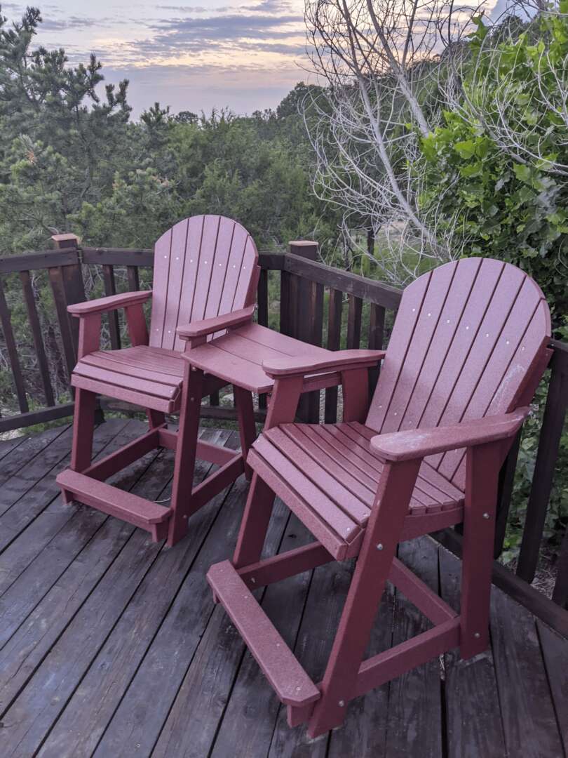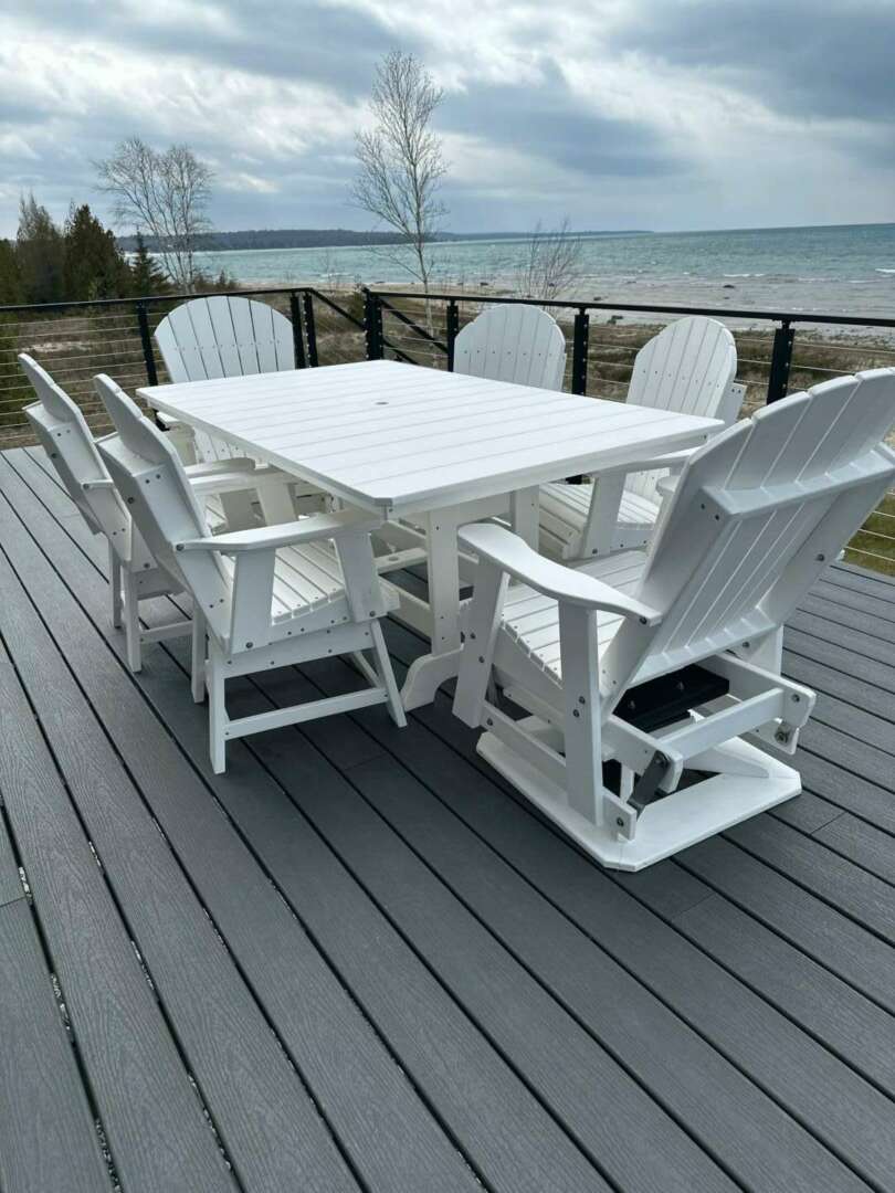 We primarily sell to customers looking to put Adirondack chairs or other poly furniture in their home patio. However, in 2022 we started marketing to other busiensses – primarily bars and restaurants. Eventually, we connected with Grand Isle Marina. They are a large public marina with a bar and restaurant. That was our first huge order. We sold them Adirondack chairs, swivel chairs, tall table and chairs sets, and a lot more.