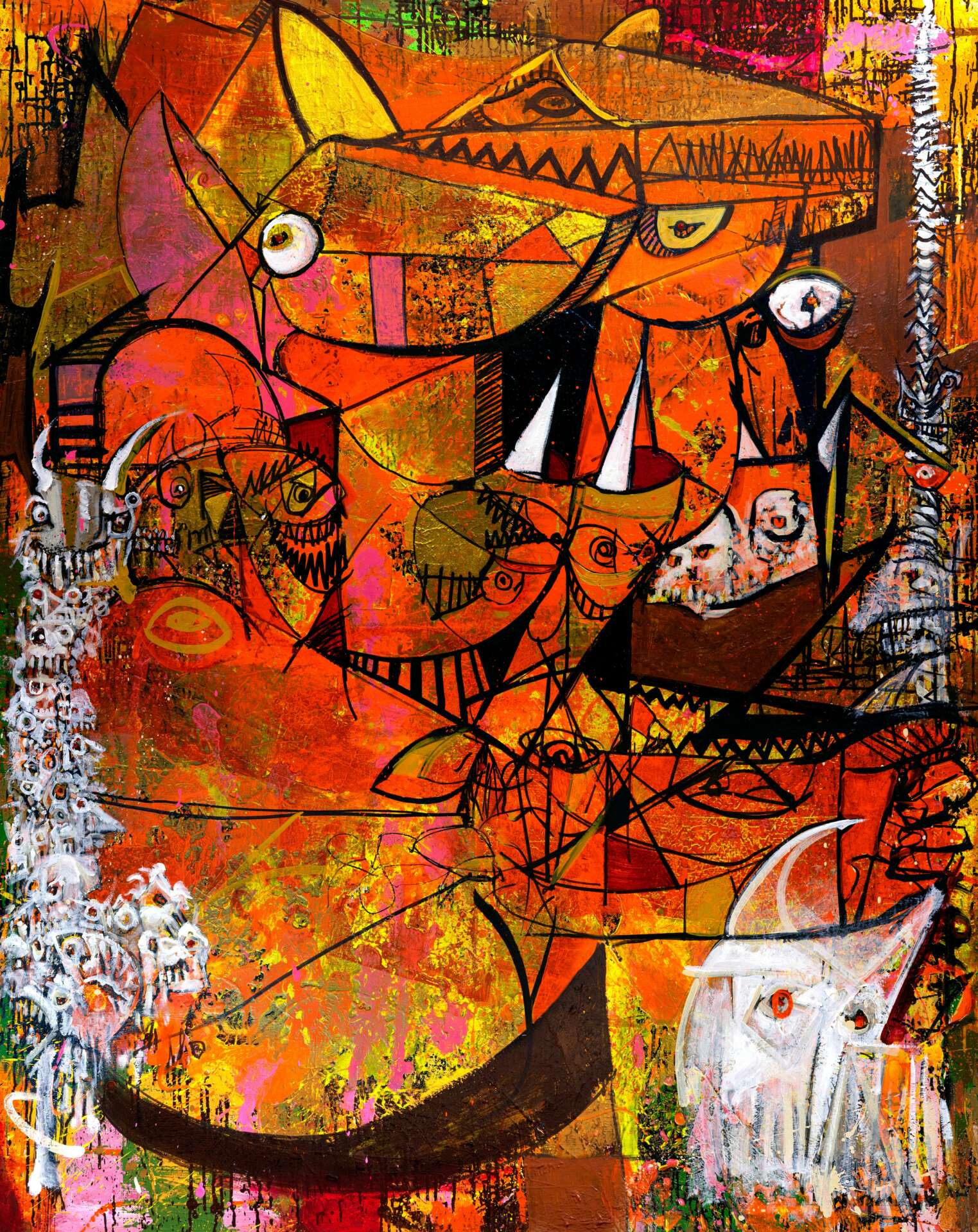 “I was a crap student in school. I’m immature and do not have the gift of words. Maybe that’s why my paintings are so chaotic and tantrum-like. There’s so much I need to say that just won’t exit my mouth properly but it’s got to come out somehow. If not for paint and canvas I’d probably be in a home for the criminally insane.”