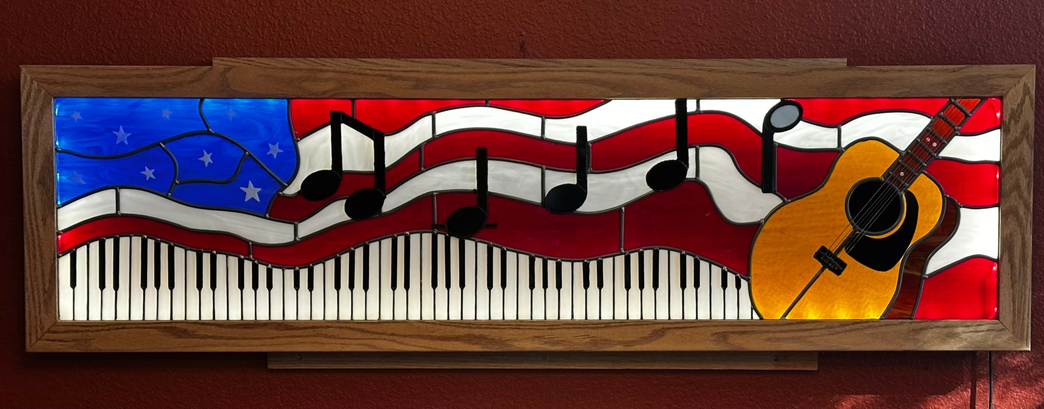 In addition to original commissioned work, we have completed many repairs. One of our favorite memories is that of a local law enforcement officer who sought us out with the hopes that we could repair a treasured piece that belonged to her grandmother. This piece had special sentimental value and was damaged in transit to her home. The young lady went to several stained glass businesses and was distraught after getting quotes that were as high as $1000 – clearly out of her budget. Her mother knew of a retired educator she used to work with (John) who has a home stained glass business.
