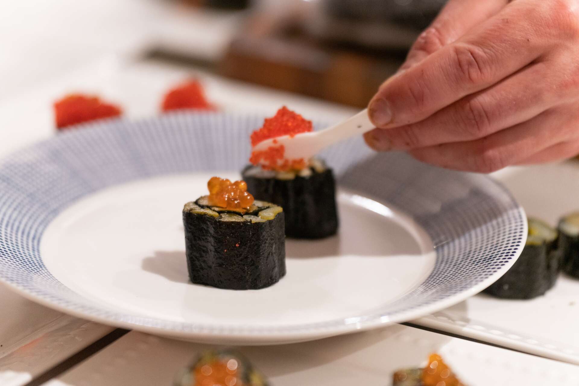 Ie: Vegan braised asparagus and Japanese Spring Onion Maki Roll or an Umami Nameko mushroom dashi Oyster shooter or stuffed quid in a Bouillabaisse or a savory bloody Mary dirty martini amuse.