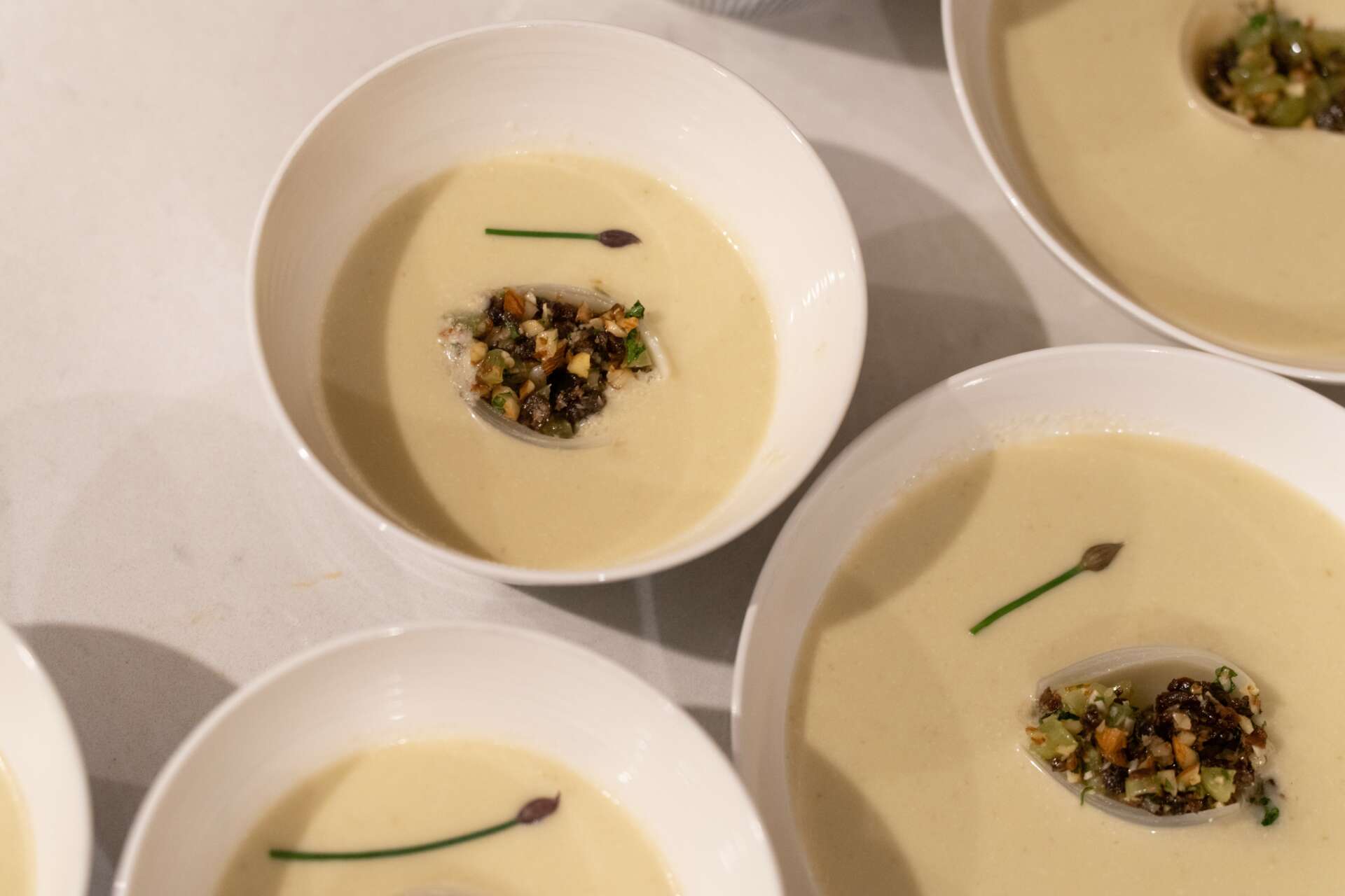 Ie: Vegan braised asparagus and Japanese Spring Onion Maki Roll or an Umami Nameko mushroom dashi Oyster shooter or stuffed quid in a Bouillabaisse or a savory bloody Mary dirty martini amuse.