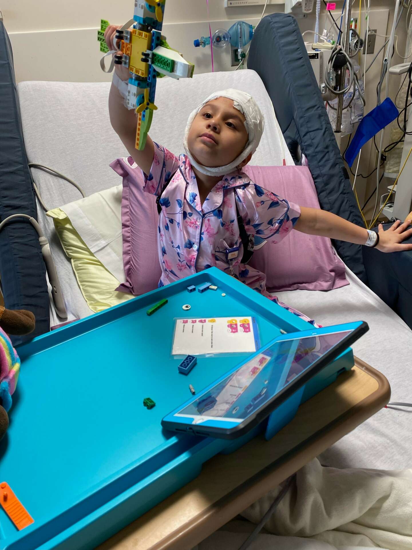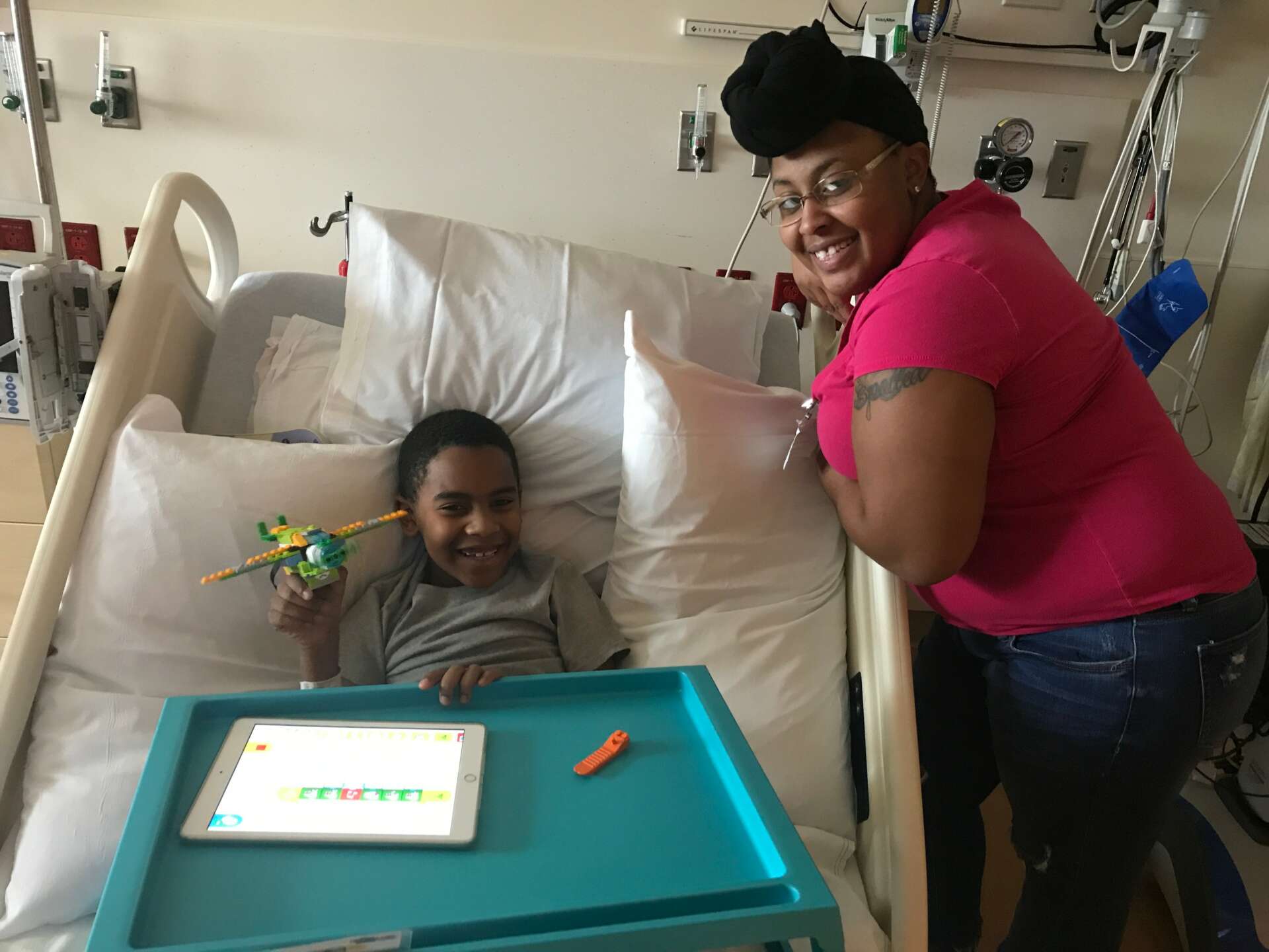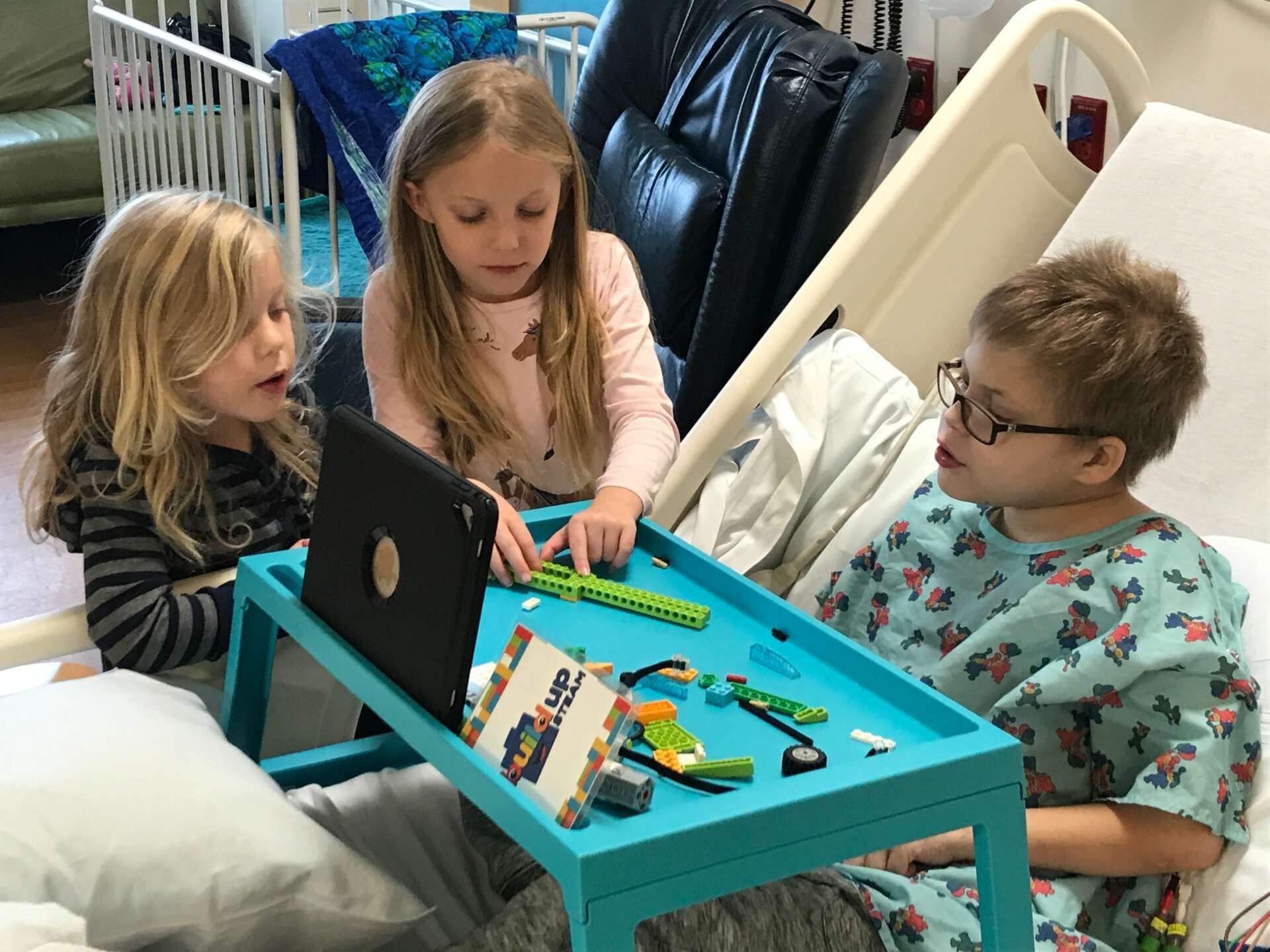 We utilize Lego because it has a strange power. Once you finish putting it together, there is a magical feeling of confidence. this creation wouldn’t exist without me. We have found through our optional surveys that building robots in the hospital builds confidence in kids. We also found that it makes them feel more energetic, helps them feel calm and even feel less pain.