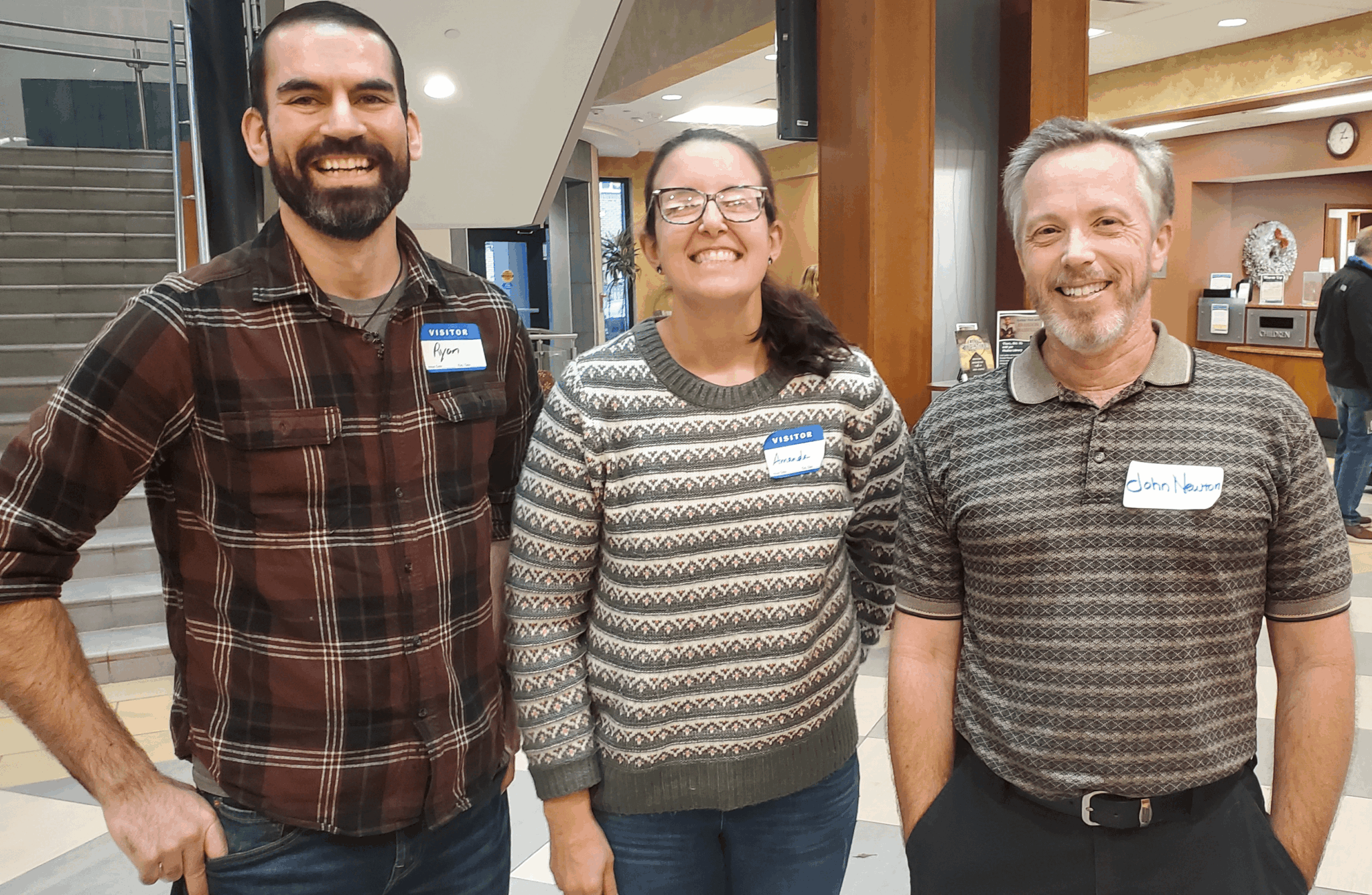 Image with three people include (from left to right): Ryan Schultz, Amanda Flowers, John Newton.