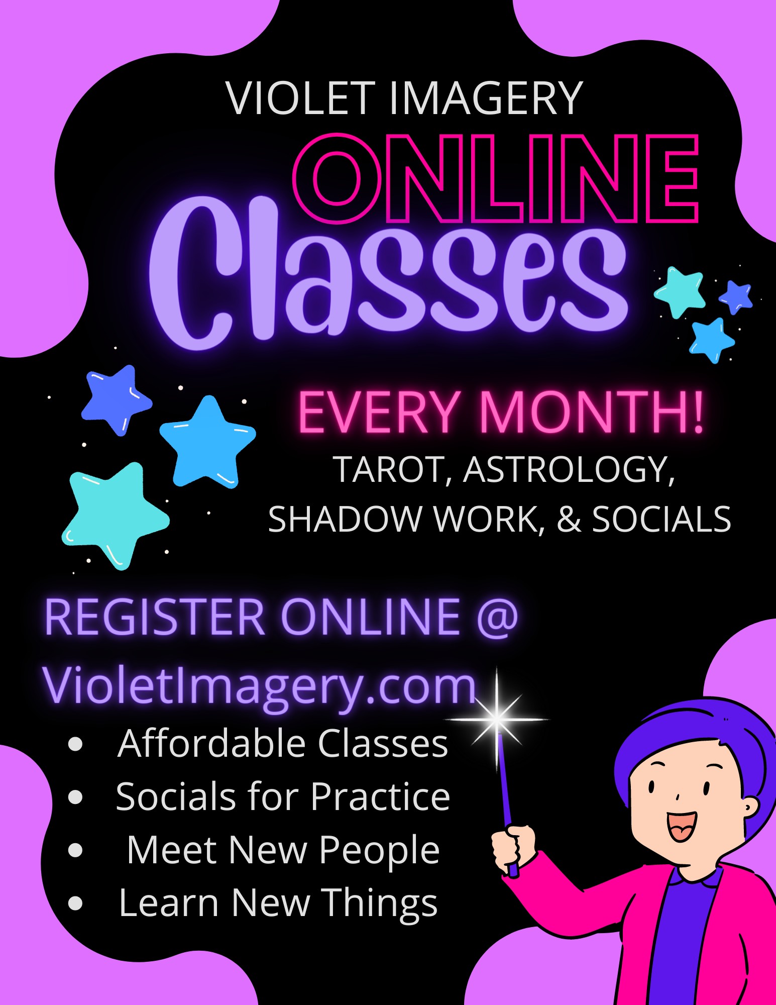 What Violet Imagery provides is an unparalleled experience where anyone with a desire to Learn, Grow, and Evolve can find tools, classes, and services to help them do just that. In providing this to as many people as possible we truly hope to heal and empower humanity so we can go forth and spread the love this world so desperately needs but we must first find and nurture within ourselves.