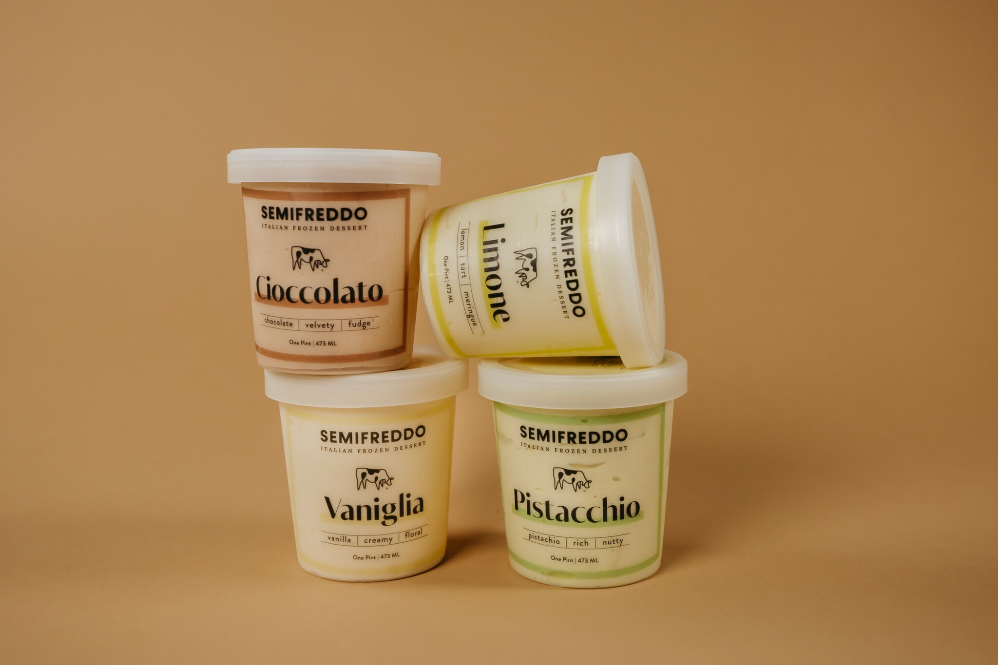 Semifreddo is an Italian frozen dessert that sits somewhere between ice cream and mousse—light, airy, and indulgent. I wanted a name that would immediately evoke those characteristics while also standing out in the market. Instead of reinventing the wheel, I leaned into the authenticity of the product itself. Semifreddo literally means “half cold” in Italian, which perfectly describes its texture: creamy and smooth, but not as hard as traditional ice cream.