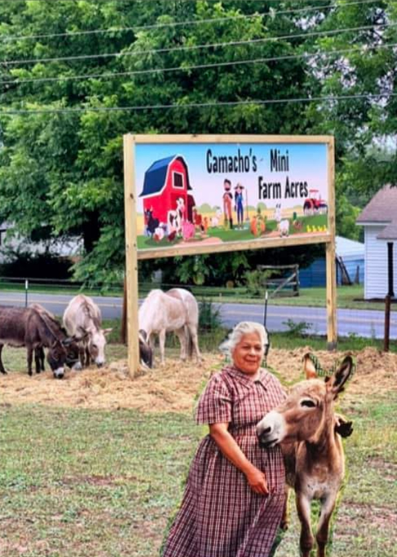 We started our farm because it was our dream to have a hobby farm and raise a family; that was our goal when we got married. We had put those plans on the back burner and let God take over our life and direct us where we needed to be first, which was to take care of my mother and grandmother and help them since they had no one else to care for them. Since I got married, I brought them along with me. The Lord, in His Word, talks about honoring your parents, and He will bless you with long-lasting life and, of course, bless you in all you do. Well, three years after being married, we found the perfect home with around four acres. We were blessed to have been the ones selected, since there were several interested in the home. My grandmother had told us to fence the property once we could afford it and buy farm animals, like she once had in Mexico. We had that in mind from the beginning, but had waited to care for them first. After my grandmother passed, the Lord blessed us with another six acres behind our property that our neighbor decided to sell us; then we were blessed to be able to buy animals. Finally, we were living our dream, and the community could see our animals from the road and would always stop by my neighbor’s driveway to let their kids see our animals. Our neighbor was getting upset at all the cars coming up her driveway and asked us to please put our animals in the back. We listened to our neighbor, but God had a plan. Soon, cars were coming up our driveway to ask about our animals and were concerned that they didn’t see them from the road. We explained the situation, and they asked if they could come and see our animals on our property instead. People were coming and making big donations so we could feed our animals, and we felt bad receiving the money, so we decided to charge a small admission fee, and that is how Camacho’s Mini Farm Acres came about.