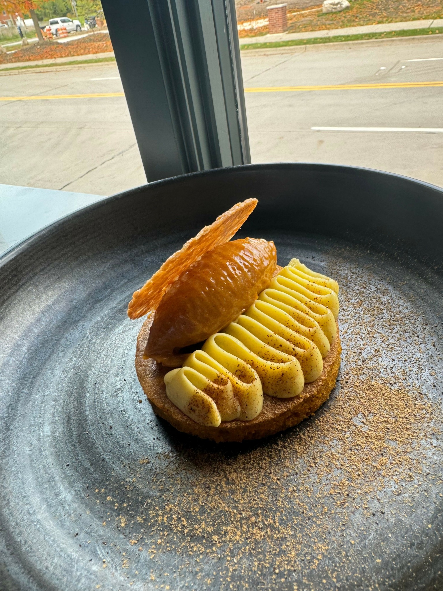 with tears in my eyes i plate together a special dessert of chocolate: a hazelnut tartlette, dark chocolate cremoux, lace cookie, and espresso ice cream. I clean my apron down and deliver the dish myself. We shook hands and i thanked them over and over for coming in to the restaurant. no feeling will ever compare to the feeling of being remembered for excellence. those guests and myself will never forget that experience.