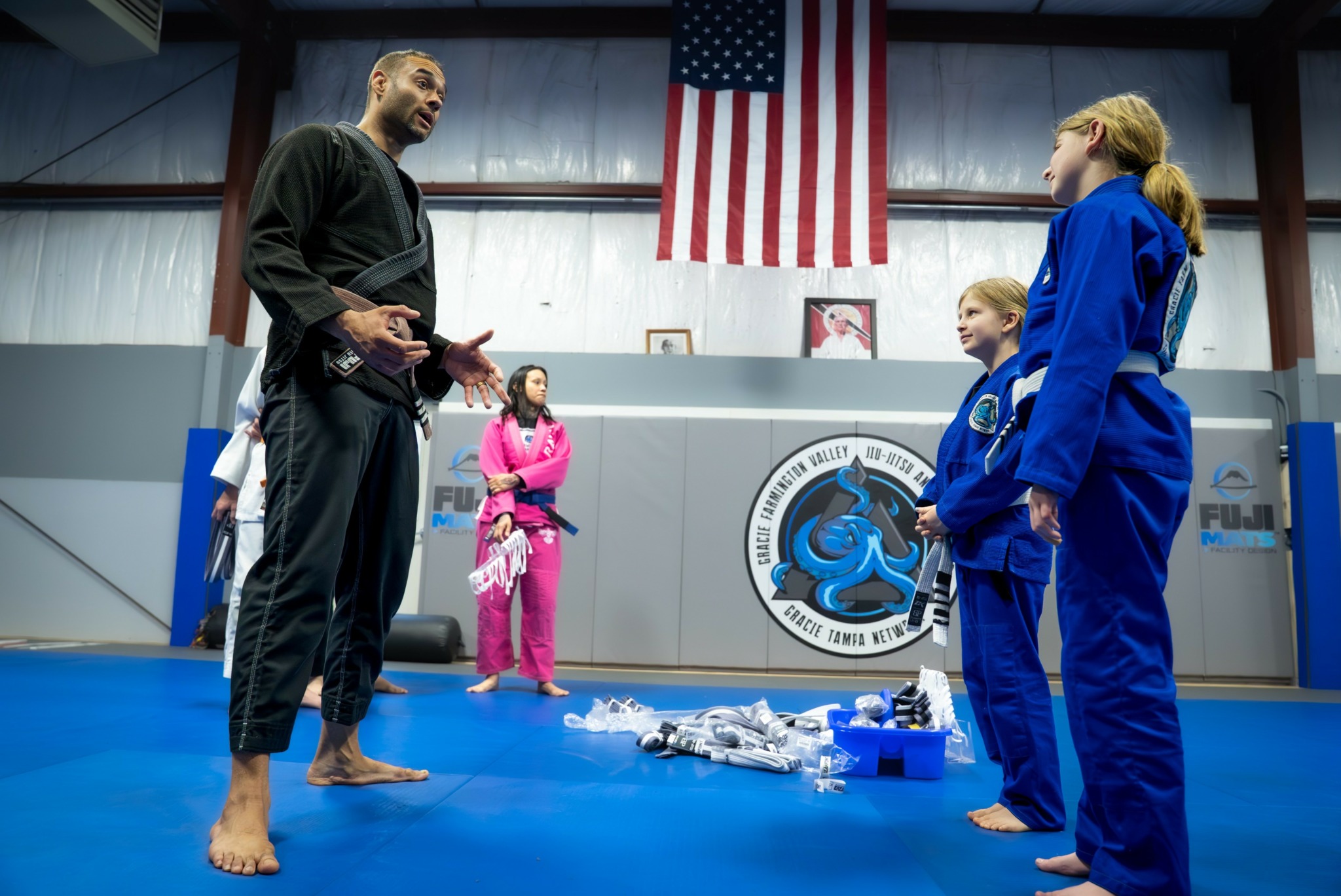 I’m a 38 year old father of two amazing little girls and husband to a dedicated loving wife. I’m one of many siblings and son of a lifelong Army soldier. Life has never and still isn’t easy. My father being in the military caused a lot of instability and constant change in our lives growing up. I was in a new school every year up until around the 6th grade. A lot of turbulence in a child’s life really sticks with them and creates some interesting character traits as an adult. I always tried to have a positive perspective in life no matter how hard things became and I think that’s what brought me to Jiu-Jitsu. The desire to work hard and grind toward a goal. I wrestled a bit in middle and high school and was always drawn to combat sports. Around 25 I knew it was something I wanted to become more involved in but didn’t know at what capacity. Then at 27 I decided it was going to be a grappling art. I googled MMA/Jiu-Jitsu schools and discovered there was a school 6 minutes from where I lived. And that was it. I never looked back. Jiu-Jitsu consumed my life. I had found an art and discipline that was not only applicable and useful but had an innate comradeship that I had not experienced in all my life. Jiu-Jitsu stripped away all the things that separates us in society and a unified pursuit of growth and overcoming was all that was left. I have to give massive credit to the culture of the individuals that was cultivated in that place as well. But I believe the mat space is a prime breeding ground for it. After training for around 7 years at Gracie Farmington Valley my wife and I ended up in a position to place me into an ownership role. My best friend and founder was looking to phase himself out of the day to day duties but was adamant about maintaining the culture that served our community so well. When I purchased Gracie Farmington Valley we had just a couple years prior moved to a much larger and more visible location in Canton. And it became my focus to expand our reach to all the families now in our immediate community. As a child I knew how tough it was to acclimate at school and in a new town with new kids all the time. Life is hard being a kid. Learning to accept ourselves and desperately wanting to be accepted by others. That’s true no matter what your background. Jiu-Jitsu had given me so many tools as an adult that had made navigating life and its many challenges so much easier. It had shaped my brain to perceive the hard things as something manageable and something I could conquer. I wanted to create an environment where we could give that to not just more and more adults, but especially to young kids. Meet them where they are and give them those tools. Show them that they were capable, powerful and give them a life saving skill. We are a unique environment in that we harbor a deep wealth of skill and knowledge on our mats. Our coaching staff can provide all that you could seek out in a Jiu-Jitsu academy. Competitive prowess, self defense development, physical fitness, confidence, true ability, a hardened mind, and of course true community and friendship. This is what I’m most proud of. No matter where you are on your journey, you’re welcome to journey with us. And we’re honored to have you choose to share that journey with us.