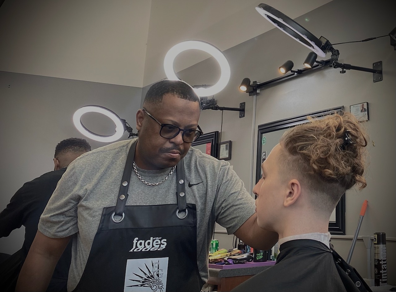 I played football in high school and cut most of my team mates’ hair. This allowed me the experience of cutting different textures of hair. At this point, I realized I had a special gift for cutting hair. During my high school years, I was the local unlicensed barber in my neighborhood. I started cutting hair in my mom’s kitchen. My clientele grew rapidly so my parents forced me to move my unlicensed shop to the garage. My dad and brother always had first dibs on appointments. One of my dad’s good friends also, had a standing appointment every Saturday morning.