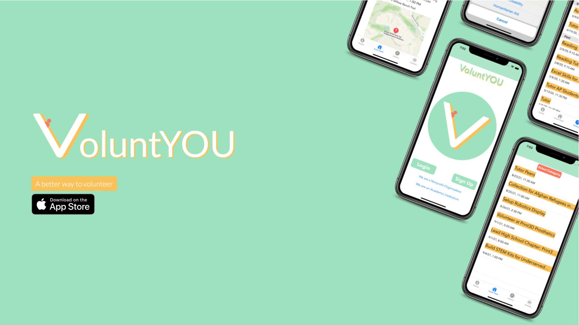 In short, VoluntYOU provides a better way to volunteer, turning good intentions into great outcomes by combining altruism with data and reason.