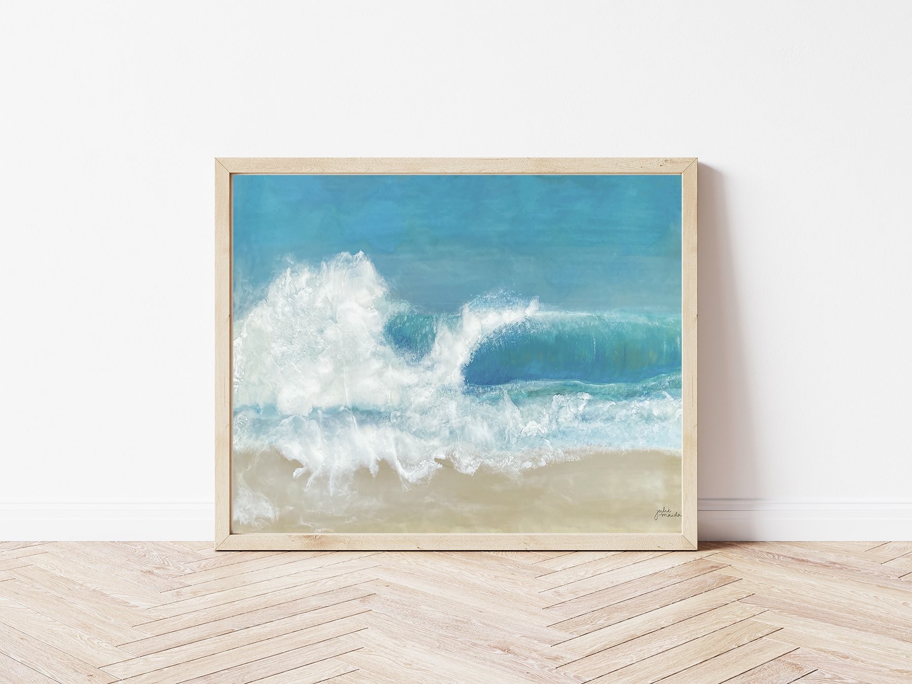 My work tends to be, as I like to call it, “uplifting”. I want people to feel joyful and peaceful when they bring my art into their homes and put it onto their products. I use a lot of cool colors – blues and greens, and terra cotta or peach, because those colors are serene and work well on products and on walls.
