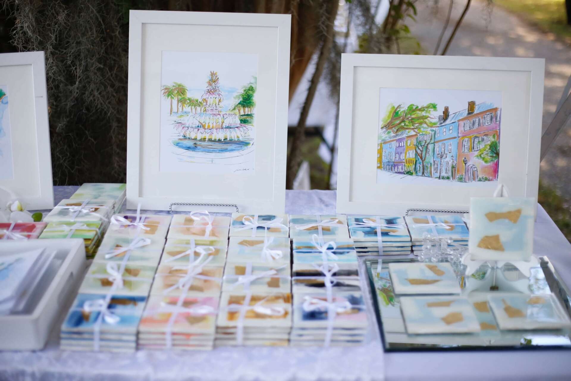 I’m a full time Charleston based artist + muralist. At a young age I started attending drawing and painting lessons, where I found a love for art. In college I took numerous studio art courses to further my education in the art field. With my eye for interior design, I enthusiastically take on private painting commissions for lacking spaces in offices + homes. I’m known for my colorful abstracts with gold leaf, tropical botanical paintings and low country inspired pieces. My biggest local sellers are my watercolors of Charleston landmarks and handmade coaster sets. I also paint dog portraits, house renderings and seasonal decorations (Christmas ornaments etc.). Along with canvas paintings, I found a love for mural work and offer custom home and business wall art. You can find my larger murals all over Charleston. I was also recently featured on HGTV’s Rock The Block.