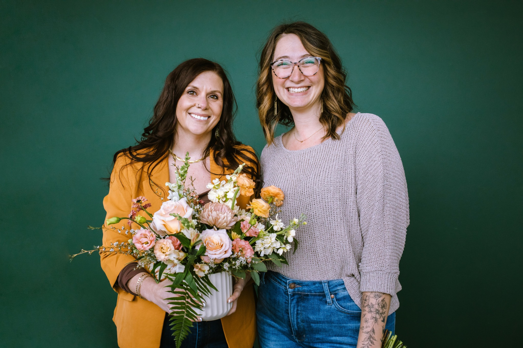 Becca, our lead designer, brings over a decade of experience in creating floral palettes that are as unique as the people we work with. She specializes in using locally sourced, seasonal flowers and enjoys sharing her love for design through workshops. Kait focuses on the bigger picture, ensuring that every customer experience is personal, memorable, and grounded in the values we hold dear.