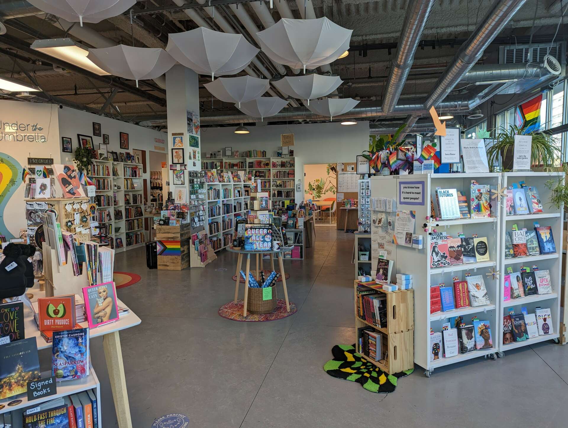 So many people reached out to express how much a space like this would have meant to them when they were younger and how excited they are to see it become a space now. Strangers have donated their favorite queer books, sent me lists of books to stock in the store, given financial and other material support, and have offered to help set up the bookstore or otherwise volunteer to make sure the space succeeds. There were also a lot of people who did their own crowdfunding outside of the Indiegogo to gather even more support for the store. Under the Umbrella is absolutely a community effort to create and curate a safe space together.