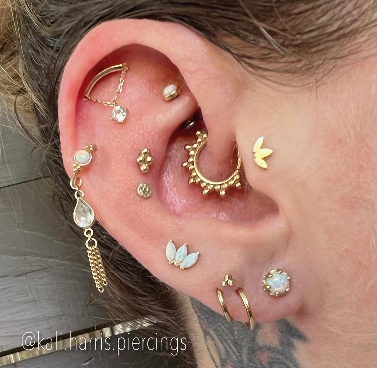 Since relocating to The Austin Tattoo Company, my love for the craft has sky rocketed. I curate the jewelry case and decide what brands and styles to bring in. I am also doing more curated ear styling – which means to style an ear with several piercings to form a cohesive look.