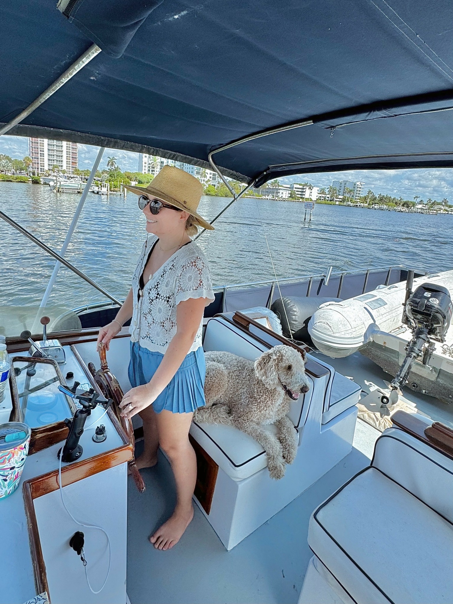 Evan and I (high school sweethearts, now married for 3 years, been together for 10 total) created a personal brand known as Navigating Nietzels. Through this we are documenting our journey of planning and eventually (soon) completing America’s Great Loop on YouTube. The Great Loop is a 6,000+ nautical mile journey through the eastern United States and Canada done completely by boat/on water. This adventure will take about a year or more on our 36-foot trawler, a 1985 Marine Trader Europa. We will live on our boat full-time with our Goldendoodle, Ripley.