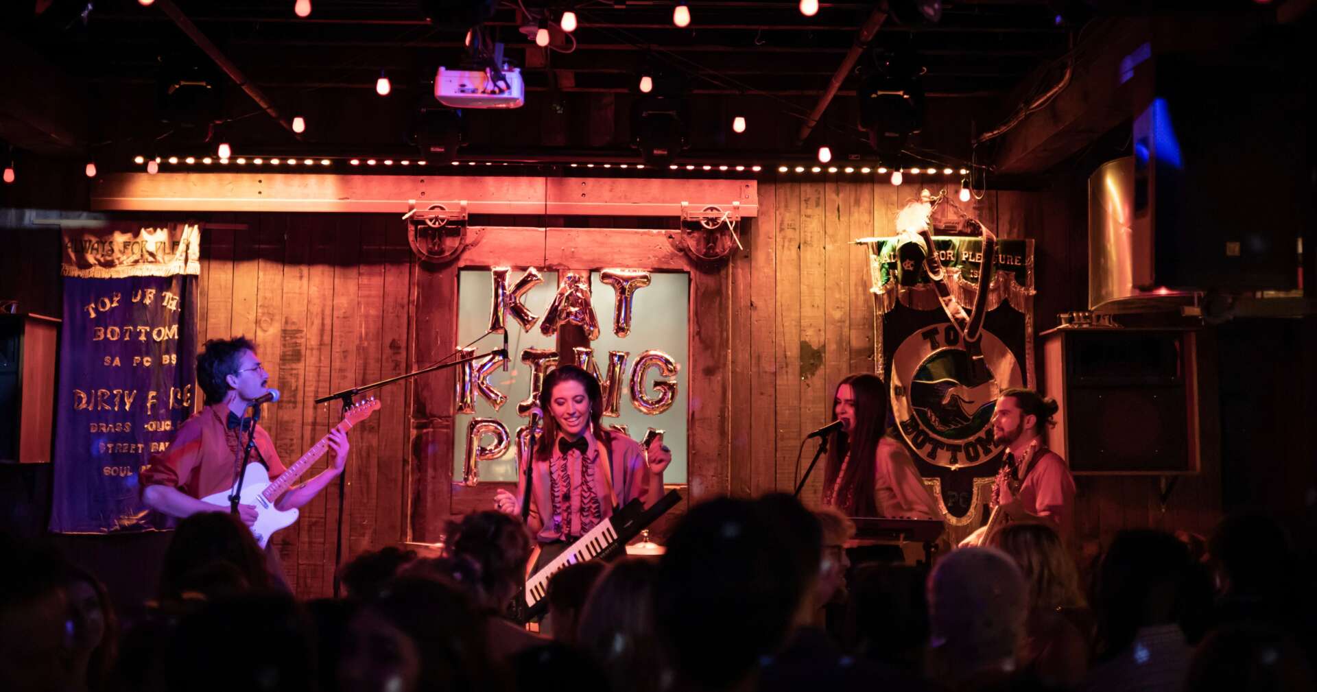 I’m Kat, a songwriter, musician and performer. I grew up learning classical piano, and am self-taught on guitar and drums. I’m the front-person of my indie pop/rock band Kat King and we perform all over Kansas City (and soon regionally) and are currently working on an EP after a year of releasing singles. “Kat King” has always been my passion project and you can stream us anywhere that you stream your music and find our upcoming shows at katbking.com. We would love to meet you at a show! Not only do I play in my band but I’ve been hired to play in others as a backup guitarist, keyboardist and vocalist, currently with Katy Guillen & the Drive. Outside of performing I’ve been hired to do voiceovers and wedding songs, and to write podcast theme songs and jingles – if you’ve heard the Blue Beetle Pest Control jingle, that’s me!