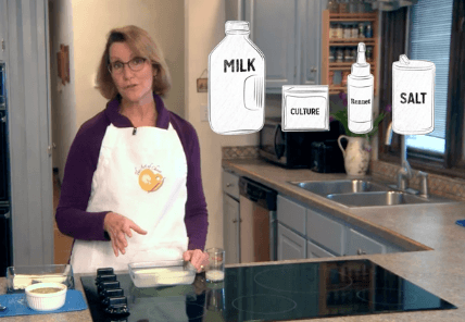 Our in-person classes are small and personal and we teach many different cheeses from all types of milk – including a variety of milks that can be purchased at the local grocery store. We try to incorporate minimal ingredients with simple equipment so that students don’t have to spend a lot to get started. And each in-person class ends with a visit in the barnyard with our friendly herd of Nubian dairy goats.