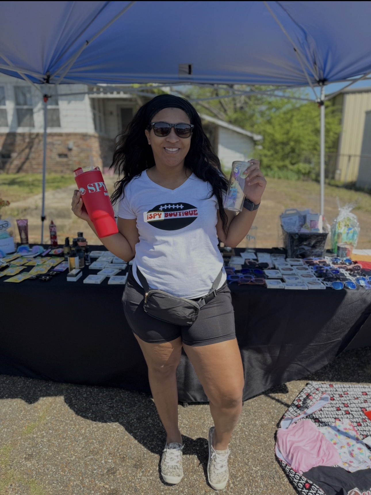 It was during those quiet hours at the office that the idea for iSpy Boutique began to take shape. I wanted something of my own — something that reflected my creativity and independence. I started small, selling lashes, and as I began doing pop-ups and connecting with customers, I saw how people responded to my vision. That excitement and connection pushed me to expand into earrings, custom tumblers, and body scrubs, transforming a spark of an idea into a growing brand.