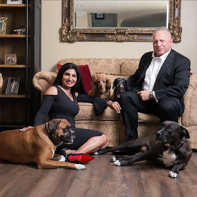 Kelly with husband Brent and their beloved dogs. (Please indicate this information regarding this photo)