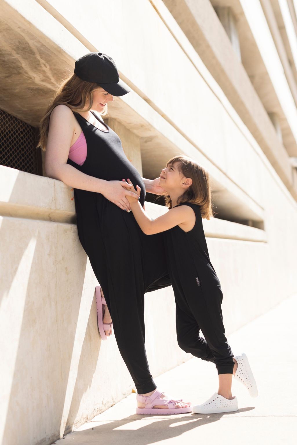 I was pregnant with my daughter and on the hunt for maternity clothes and discovered they had not changed since my first pregnancy with my son five years prior. They were expensive, frumpy and uncomfortable! Worst of all you have to keep buying more and more as you go through the trimesters. I thought, there has to be something better so I designed- The Momper. A waistline free one-piece jumpsuit that grows with you all nine months of maternity and beyond.