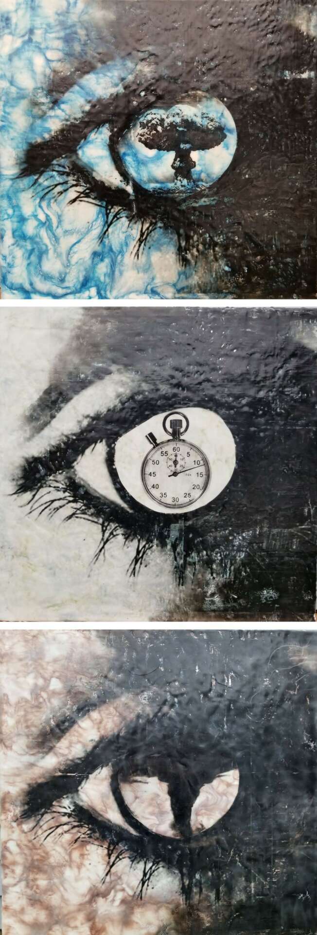 The calls, texts, and emails from those who had no idea about my illness were so supportive and positive that I was encouraged to do my first art piece directly about my bipolar disorder. I made a large encaustic tryptic titled “Self Portrait of a Bipolar Artist” and entered it into the Women’s Caucus for Art National Juried Competition. It, and another piece I entered, were both accepted (Feb. 2020).